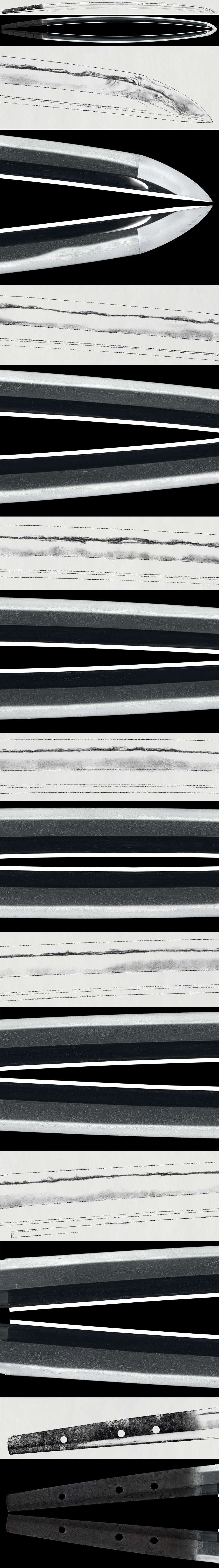 Hamon: Nioi-based suguha with ko-ashi, developing into irregularities toward the upper portion.