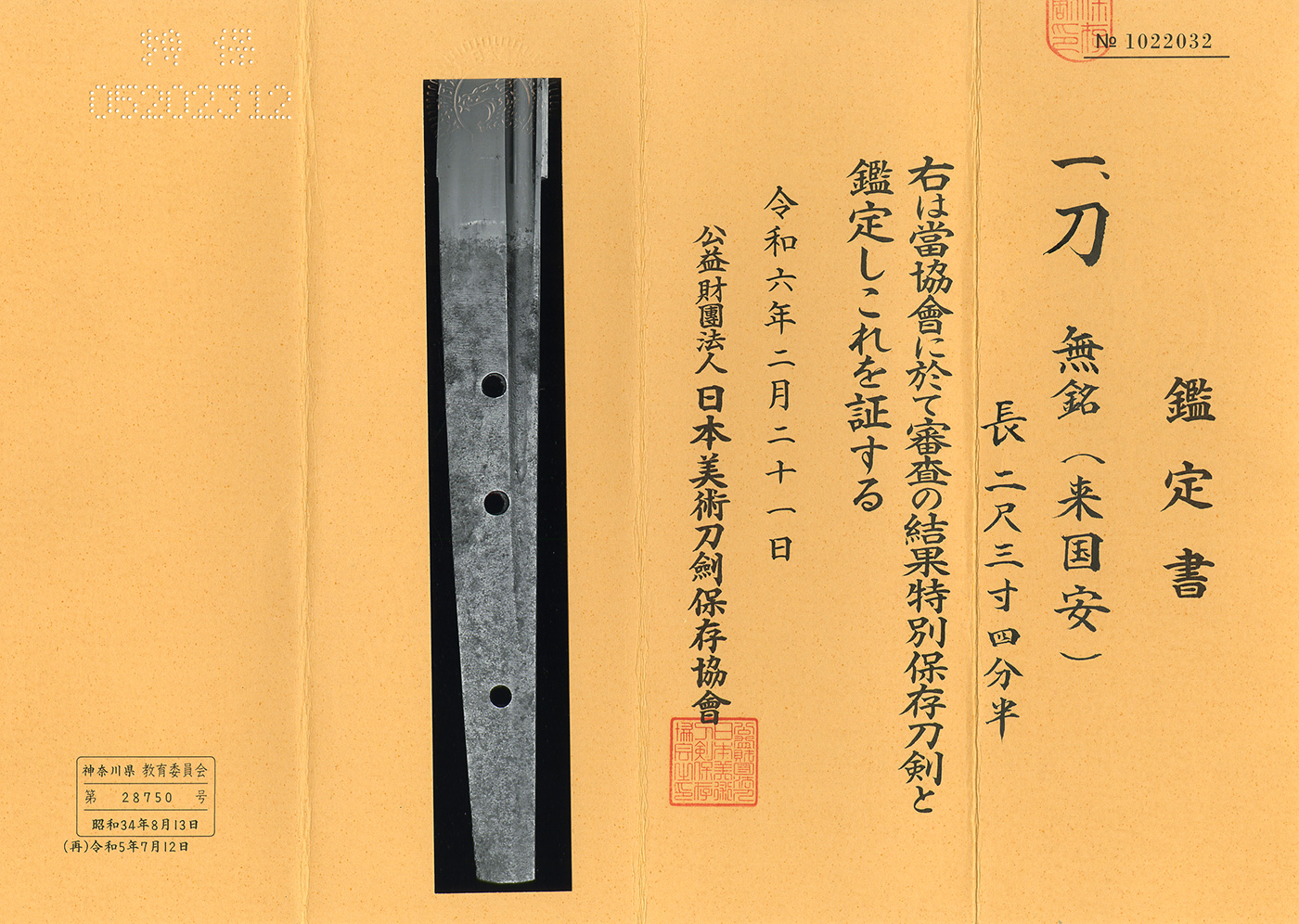 This sword is ranked as Jyojyo Saku (superior grade) among the works attributed to Rai Kuniyasu.