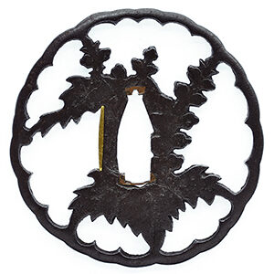 Ordering number:F23056 Tsuba: Mei(signature): Busyu Jyu Masa□□/武州住正□ Dimension: 7.0cm x 6.7cm(2.8 inches x 2.6 […]