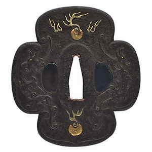 Ordering Number:F24358 Tsuba: Inscription: Mumei(unsigned) Dimensions: 7.64 cm x 7.20 cm (3.01 inches x 2.83 i […]