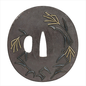 Tsuba: Mumei(unsigned)(Kaga inlay)(NBTHK Hozon Tosogu)