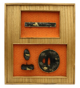 Ordering number:F25110 Set of Tosogu: (Fuchikashira, Kozuka, Tsuba):Mumei(Unsigned) Features:Made of shakudō w […]