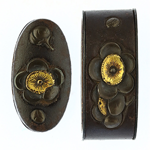 Ordering Number: F25176 Fuchi Kashira: motif of plum blossom Signature: Mumei(Unsigned) Fuchi Dimension: 3.76c […]