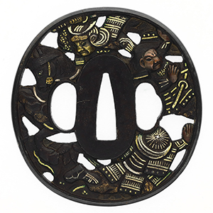 Tsuba:Mumei(unsigned) Samurai motif新着!!