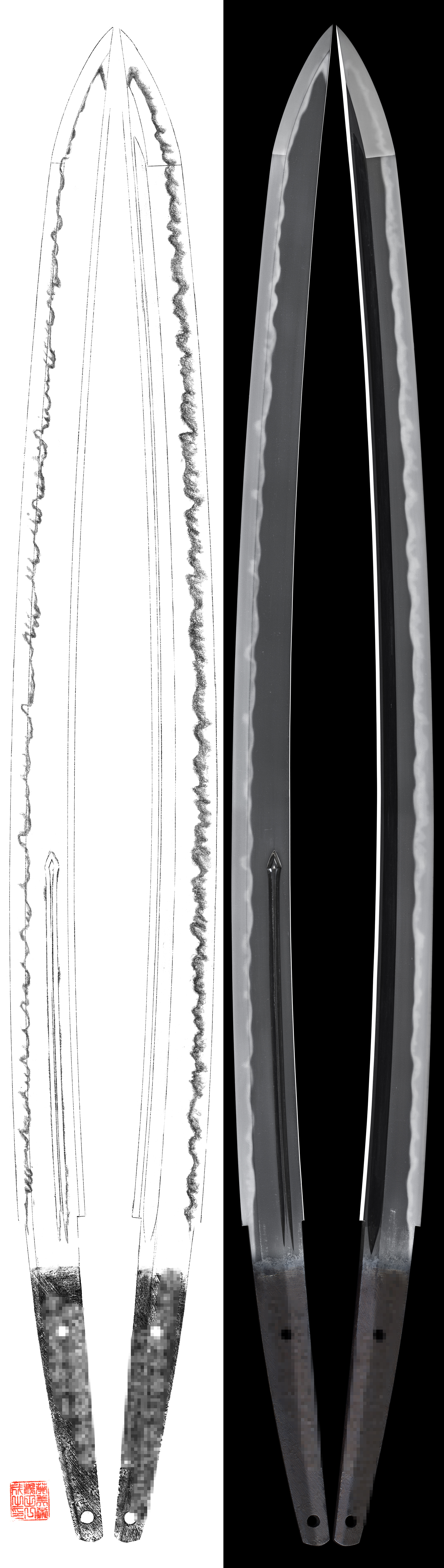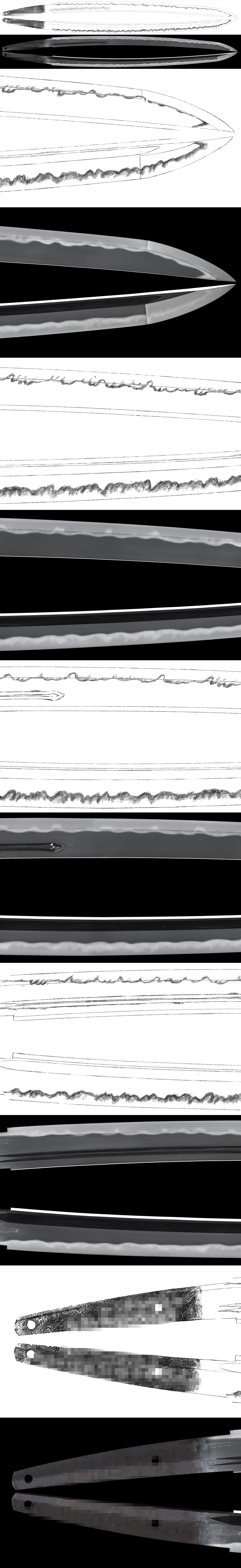 Shape : The blade is wide(3,37) and thico with long kissaki .