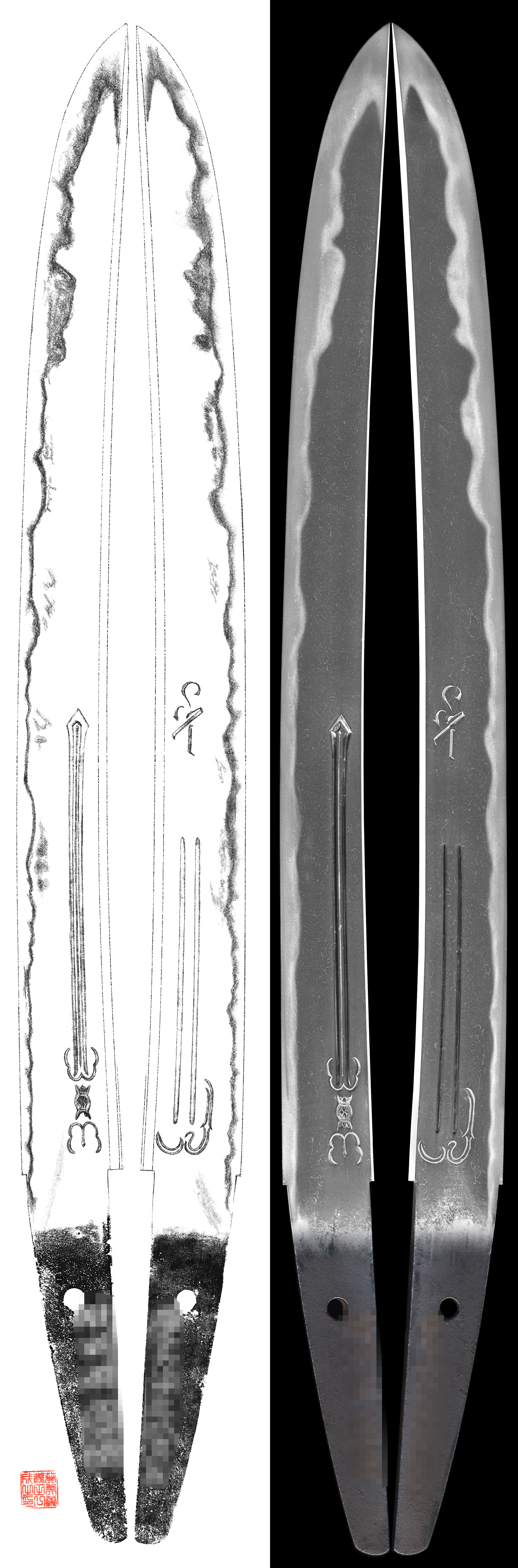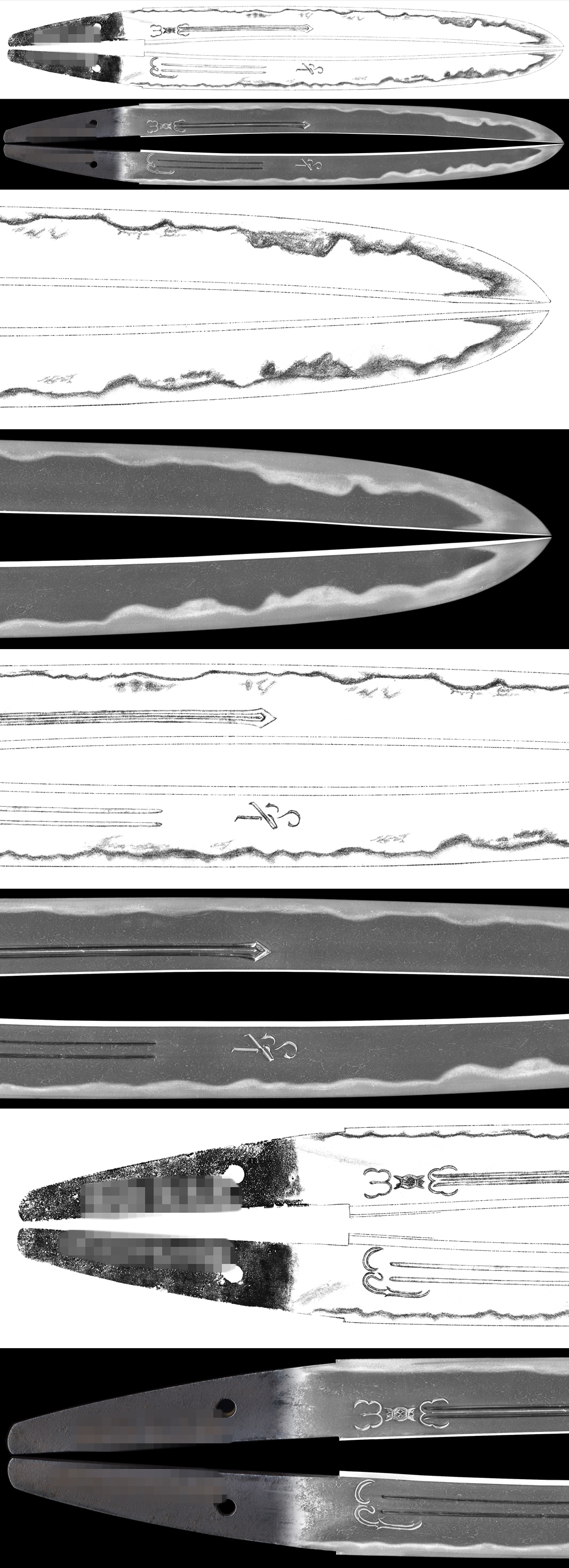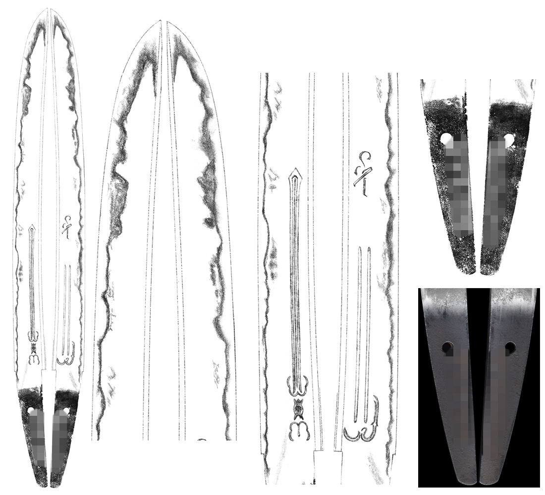 Horimono:both sides of the blade sanko tusk Ken, on the back, bonji tsume and Gomabashi marudome style.