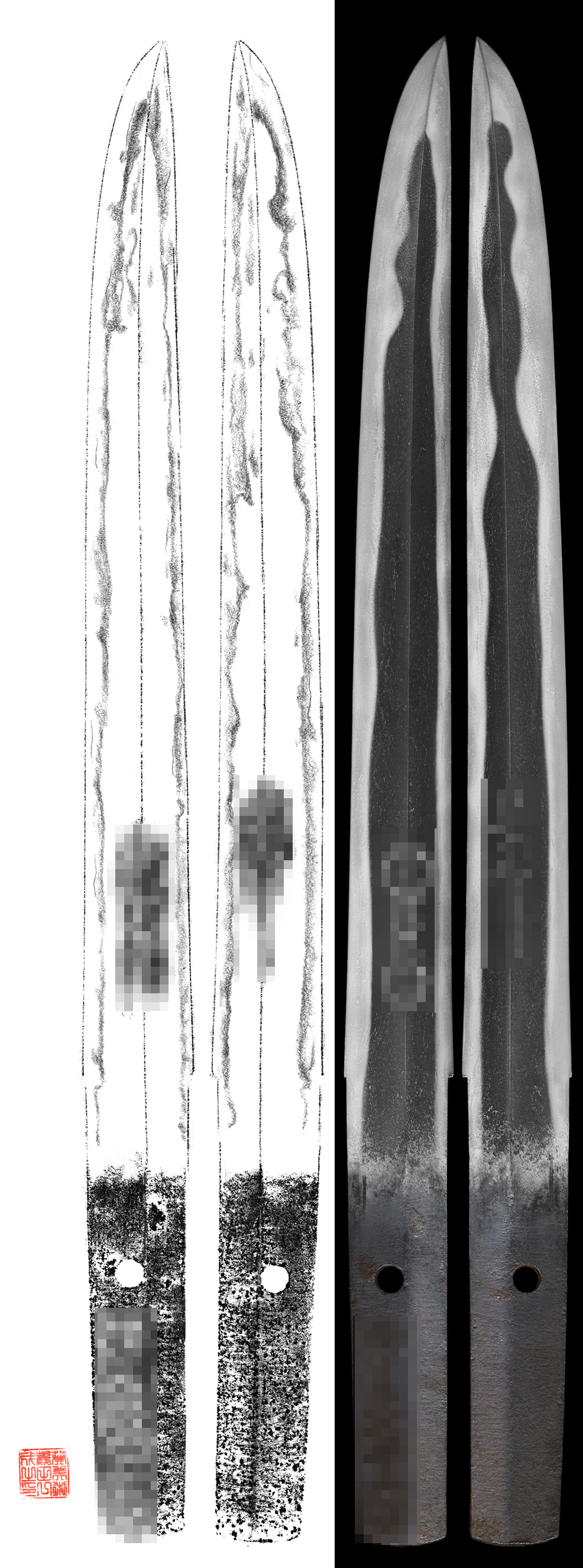 swords from his father Kagemitsu and made Kataochi Gunome style but later on He made his own style like this sword.