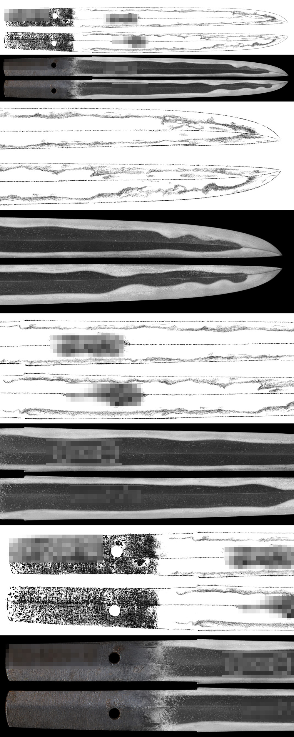 Hamon : Niedeki Suguha with Notare and Gunome midare, with thick nioikuchi and a lot of soft ashi, sunagashi, Yo and Kinsuji.