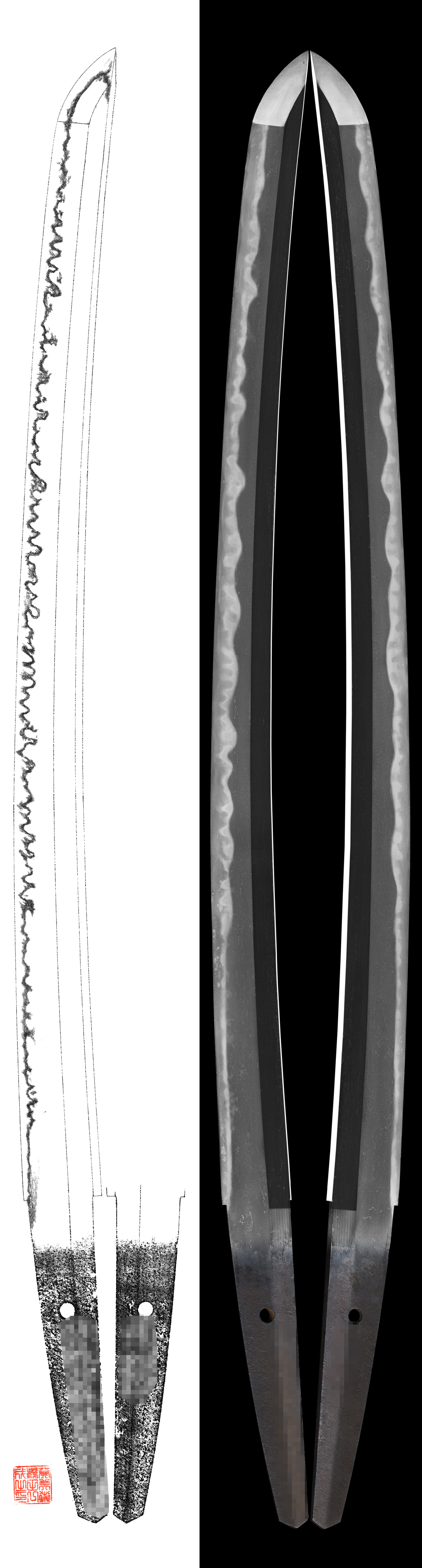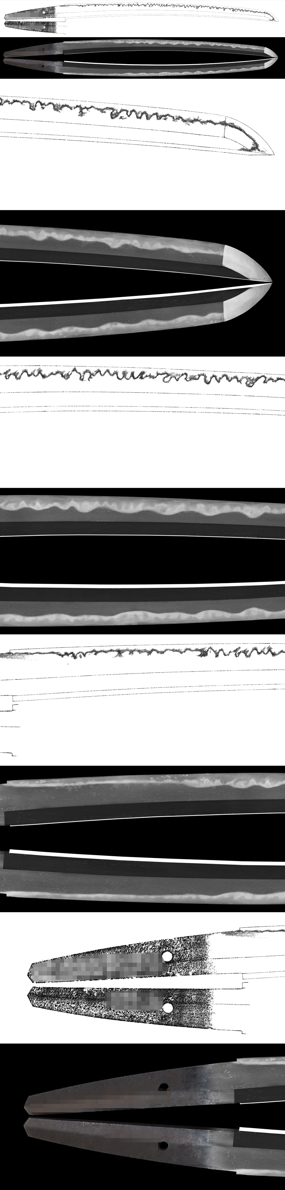 Hamon : Niedeki gunome midare Togari gunome mixed.