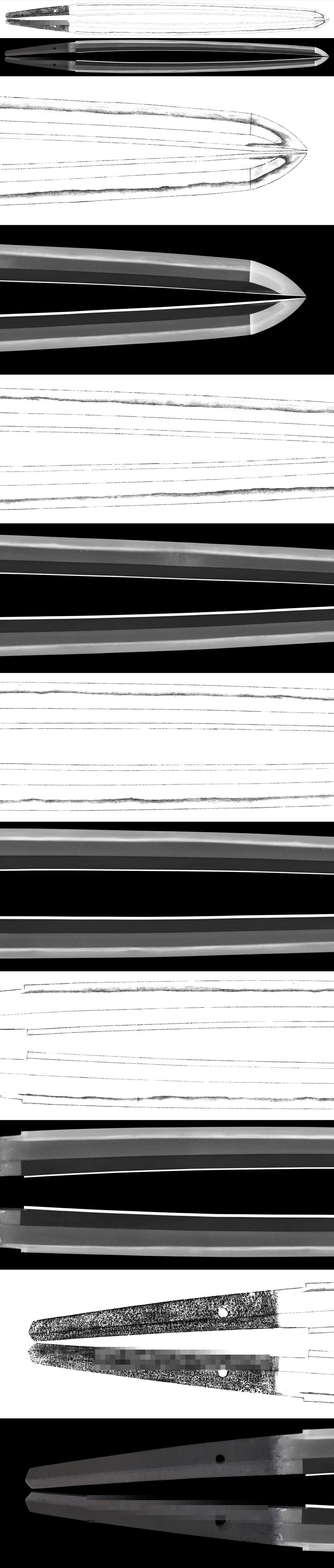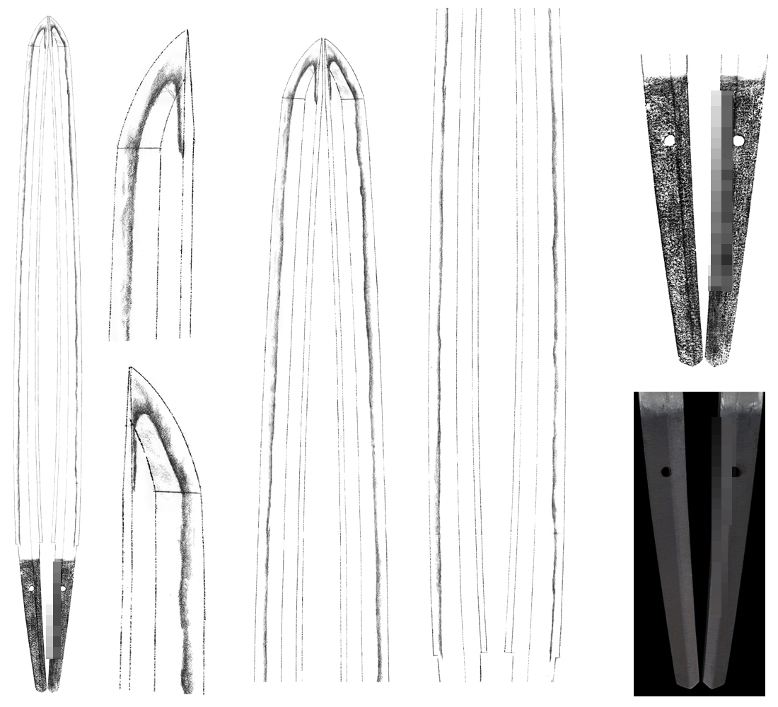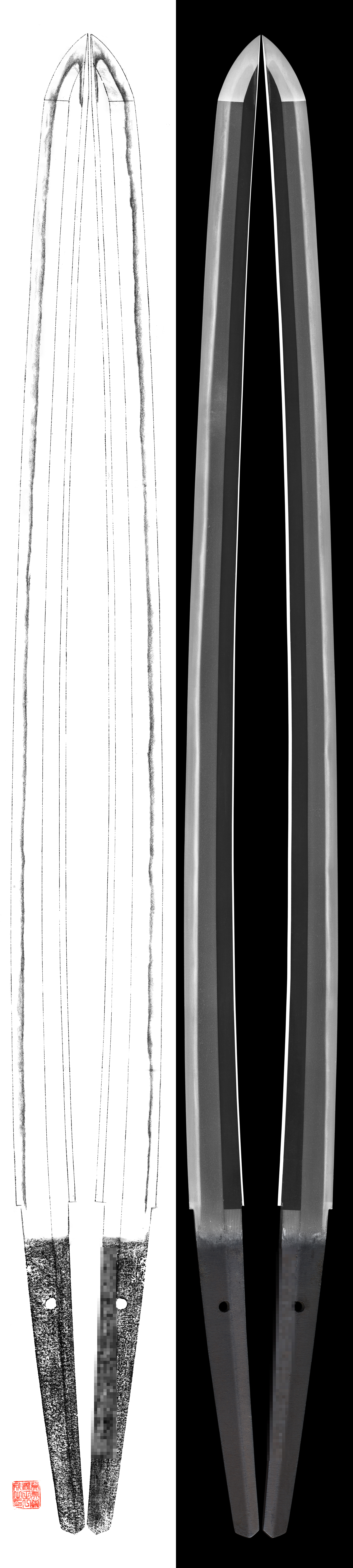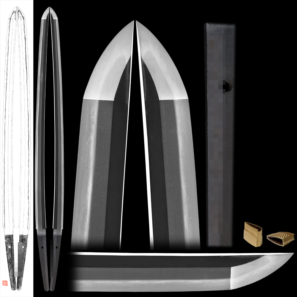 Shape : The blade is wide(Motohaba 3,3cm) and thick and long kissaki nice looking healthy blade.