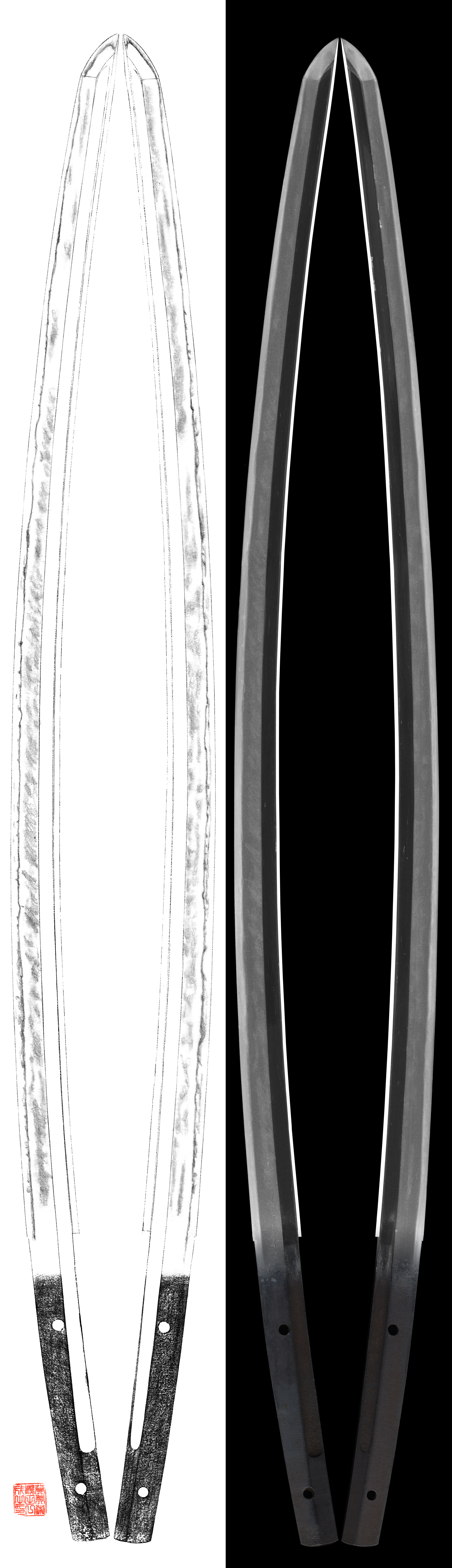 The condition of the Nakago is perfect and bistable to see the Yasurime and signature well.