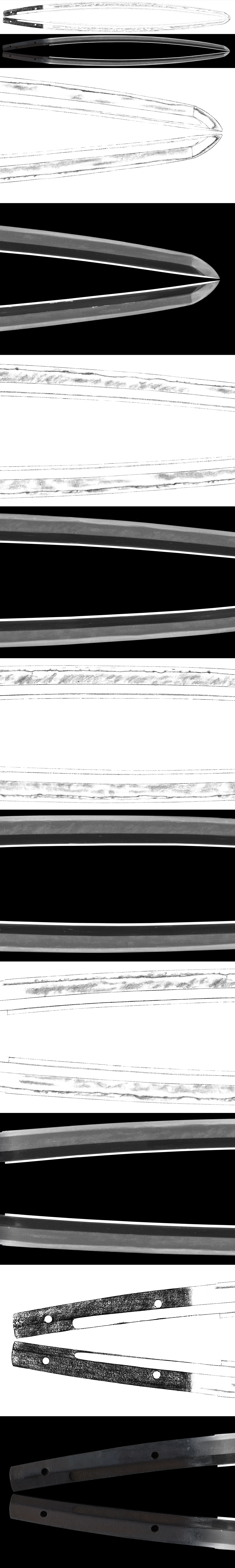 Shape : The blade is regular sized osuriage mumei (cut shortened) Katana.