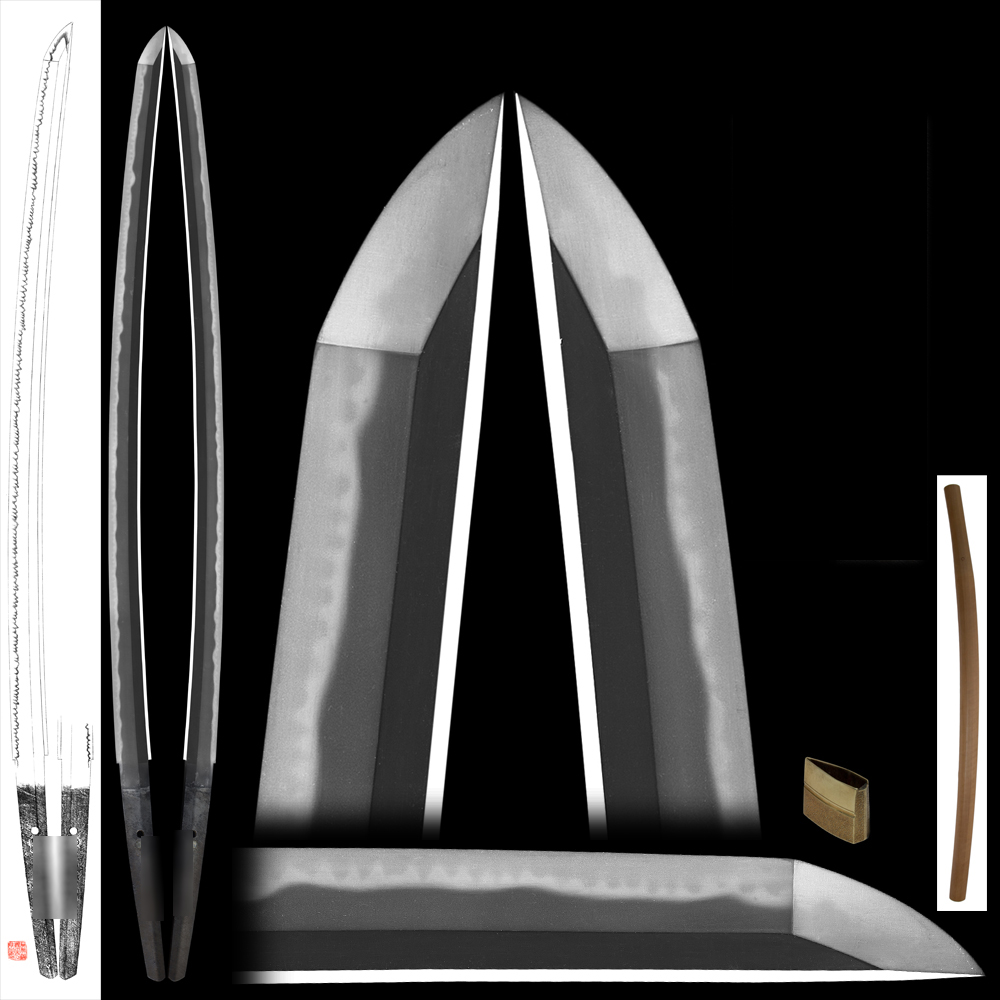 Shape : wide and thick with Sori, this is healthy blade. Kissaki is long.