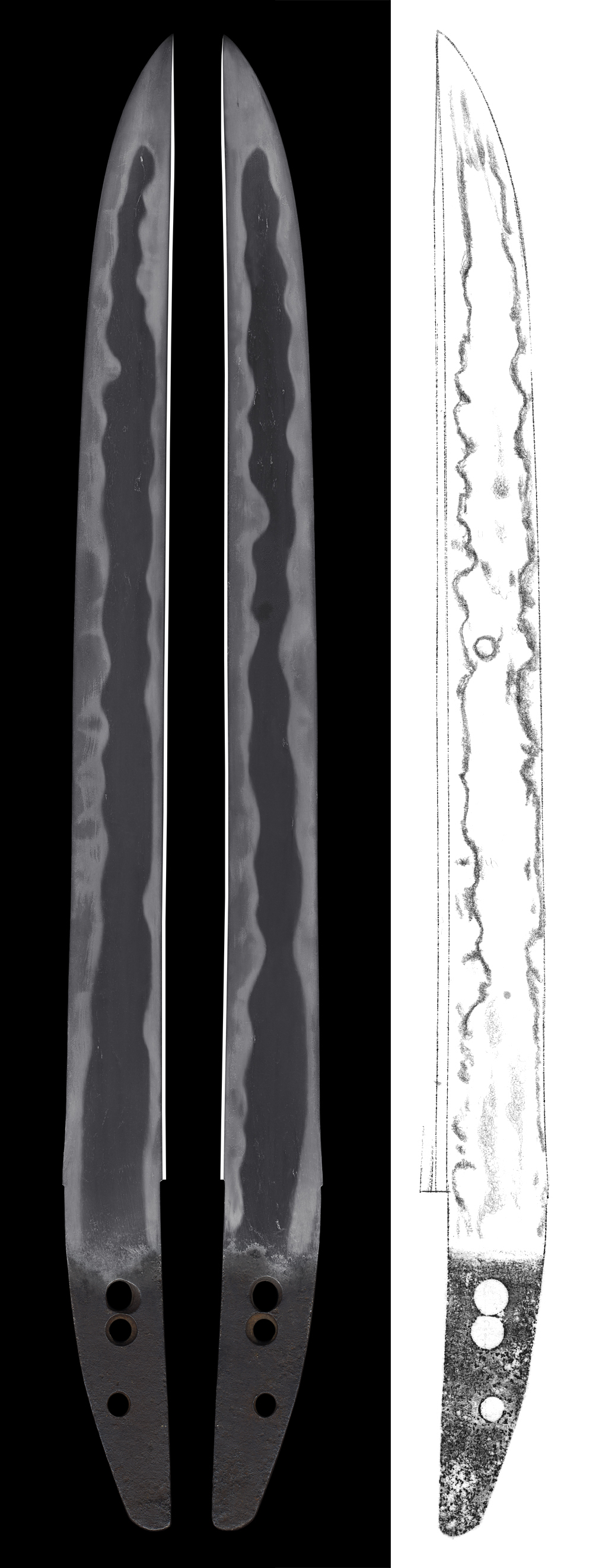 Shape : The nakago is small and regular Tanto with Mitsumune style.