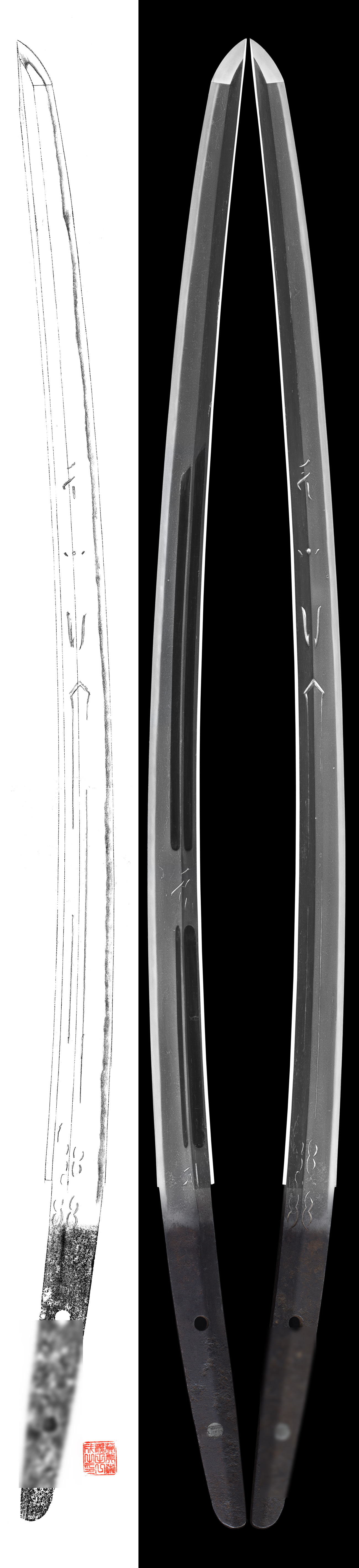 In moot side, double bo-hi and Bonji are engraved and revers side, Suken and bonji are engraved.