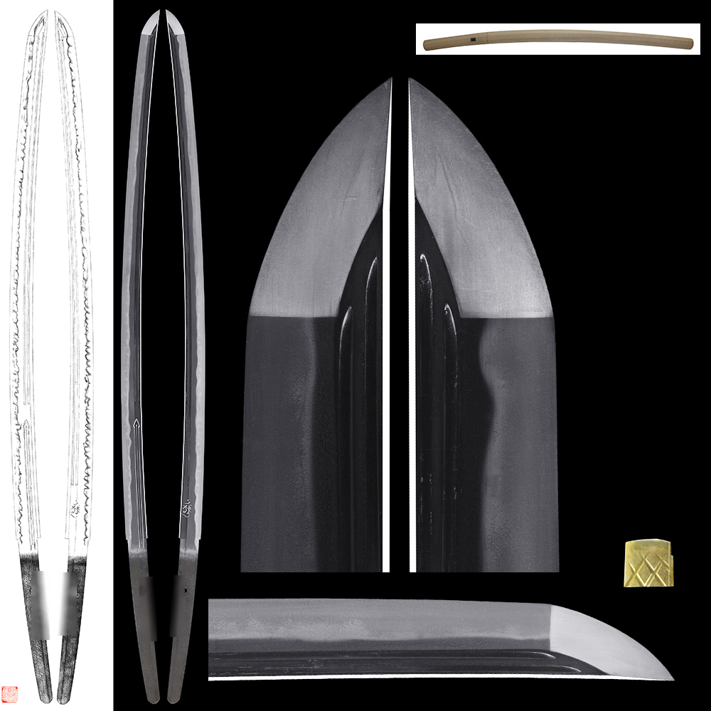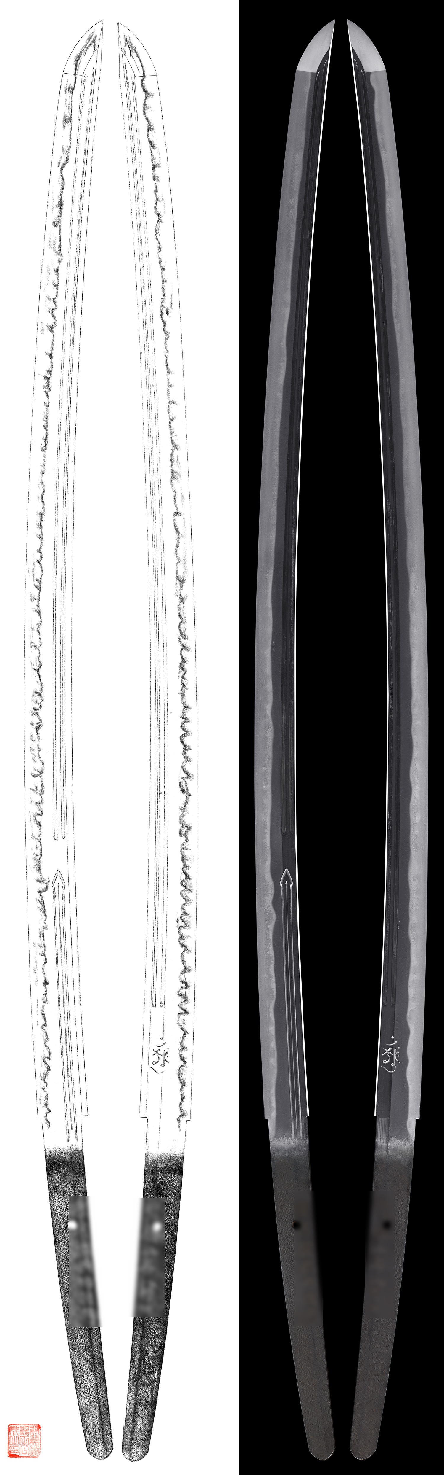 Shape : The blade is wide and thick with deep sori and longer kissaki nice looking shape.