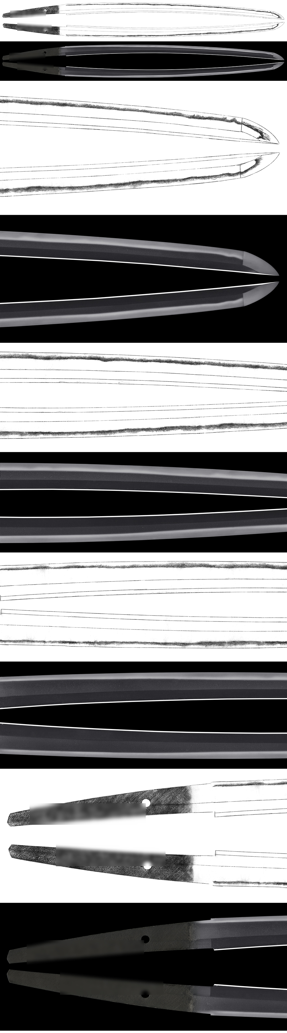 Hamon : Niedeki, Suguha. Deep Nioikuchi. There are many Sunagashi and Kinsuji.