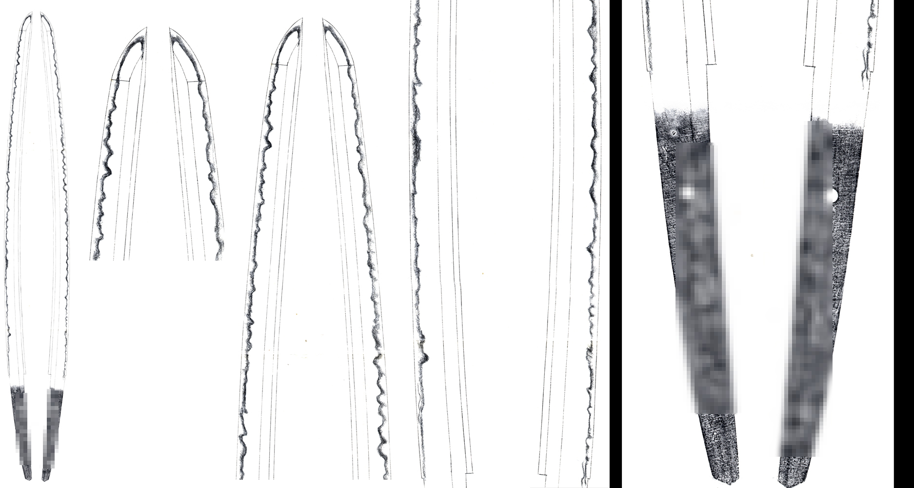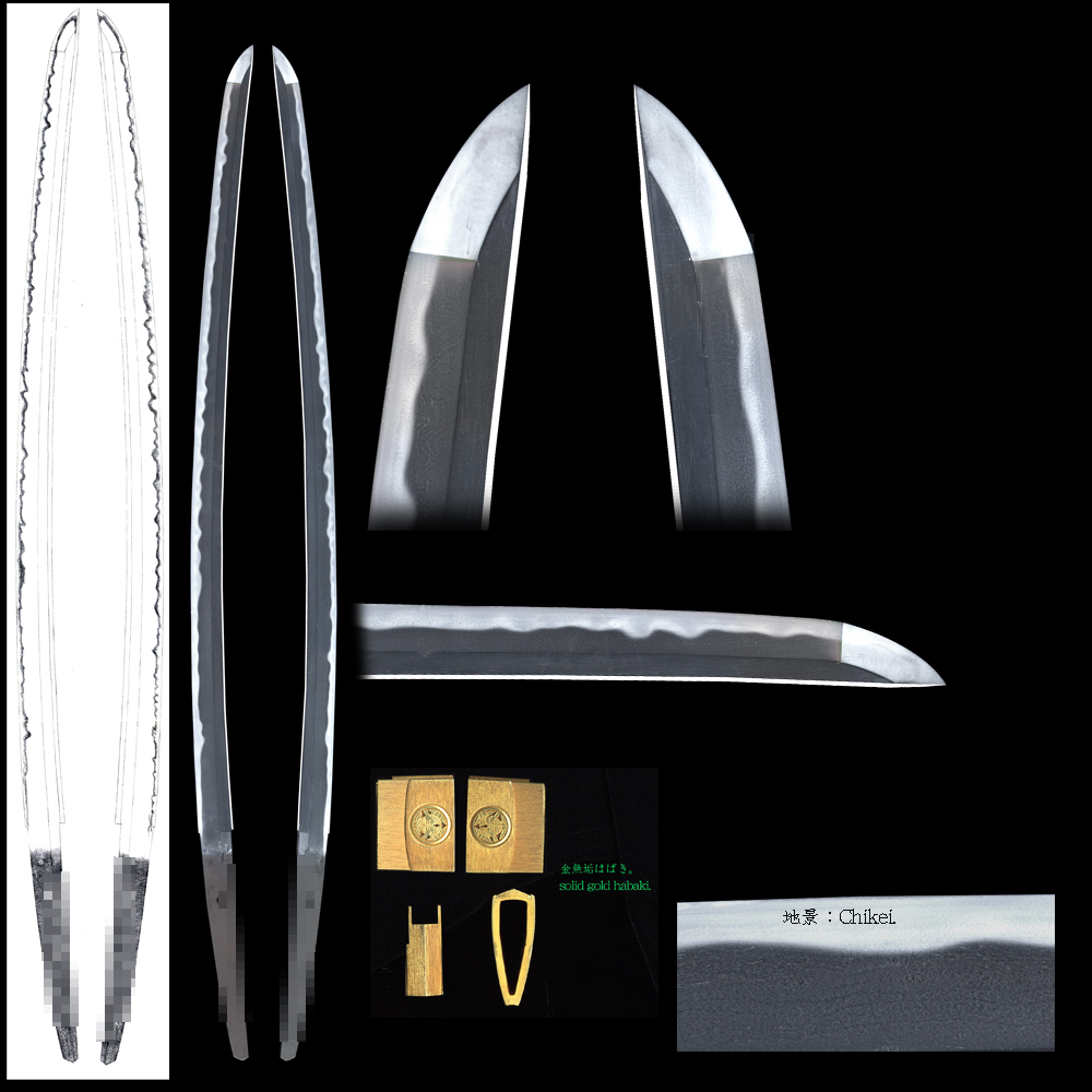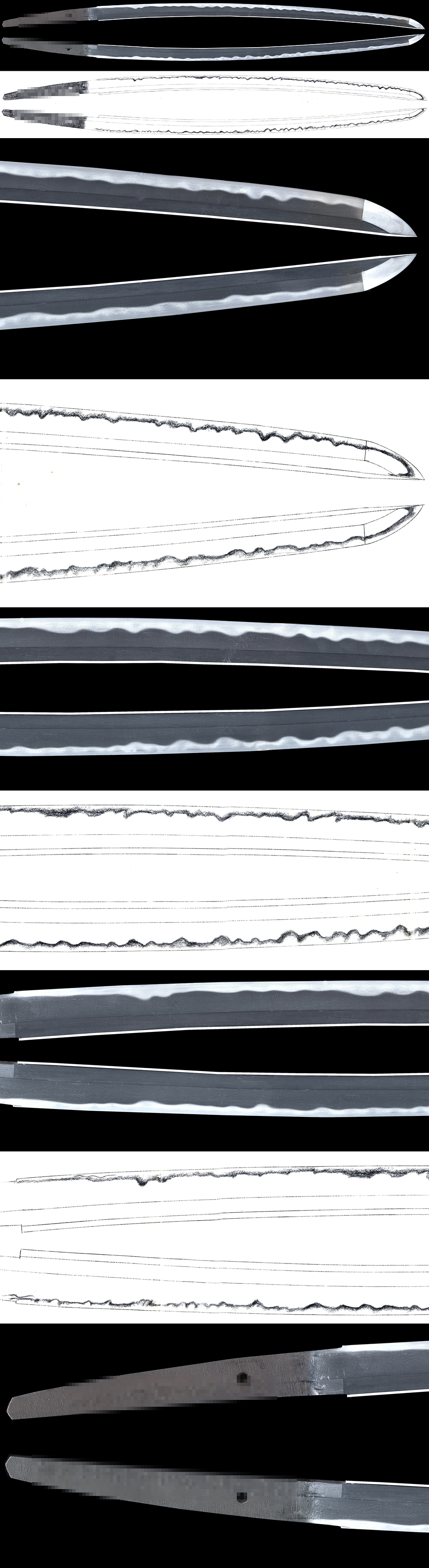 Shape : Wide and thick blade with Sori. Kissaki is long.