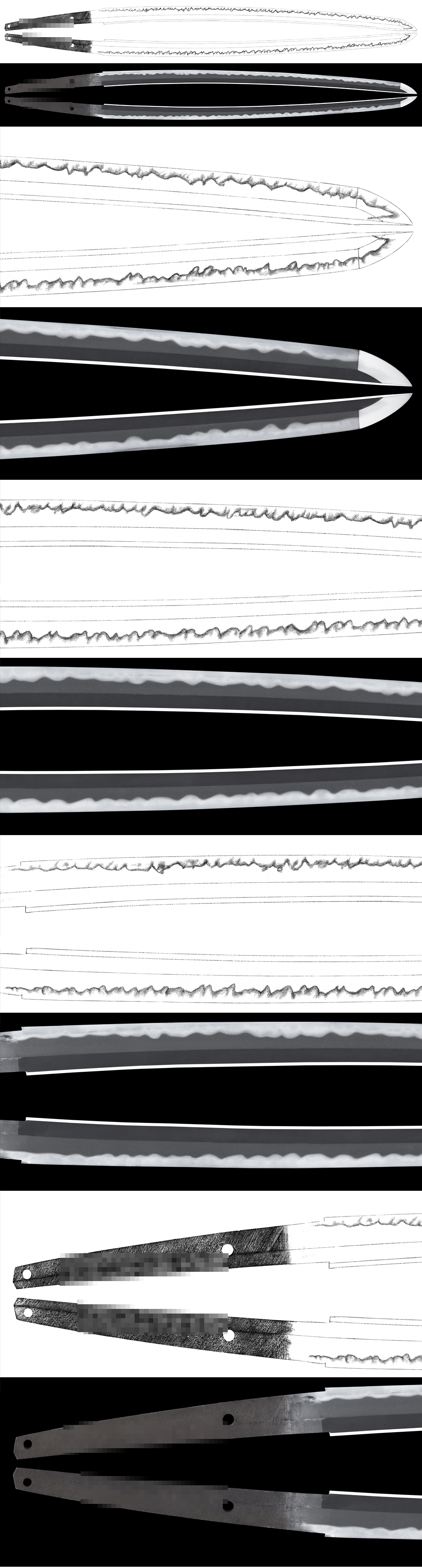 Hamon : Niedeki gunome midair with thick nioikuchi and ash work.