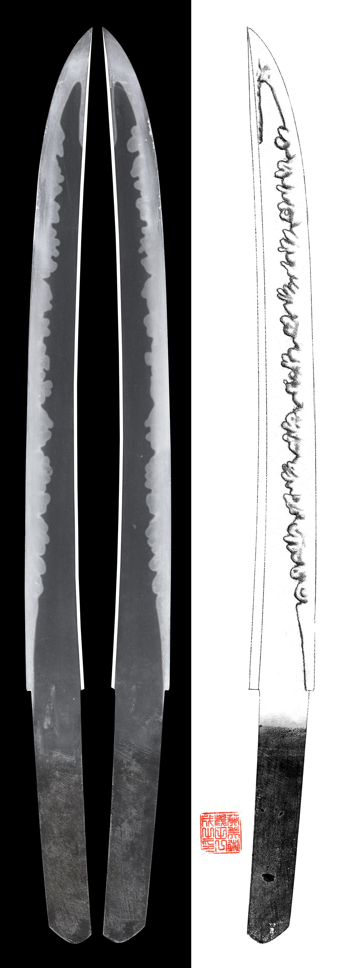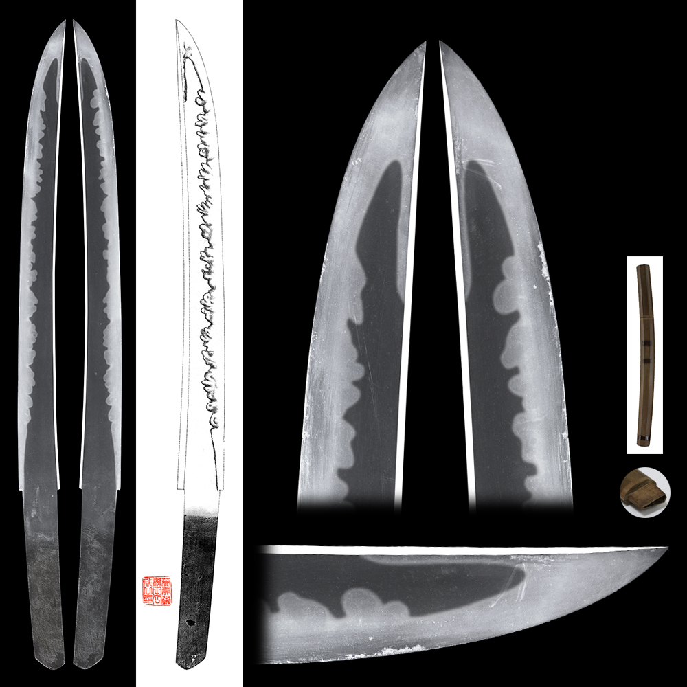 Special feature : Bicchu koku Manjuso is one of the Aoe school's most renowned sword smiths. This blade is Ko-Itame Hada and Ko-Mokume Hada mixed, and the Nioikuchi wide and bright Hamon which is typical Aoe school.