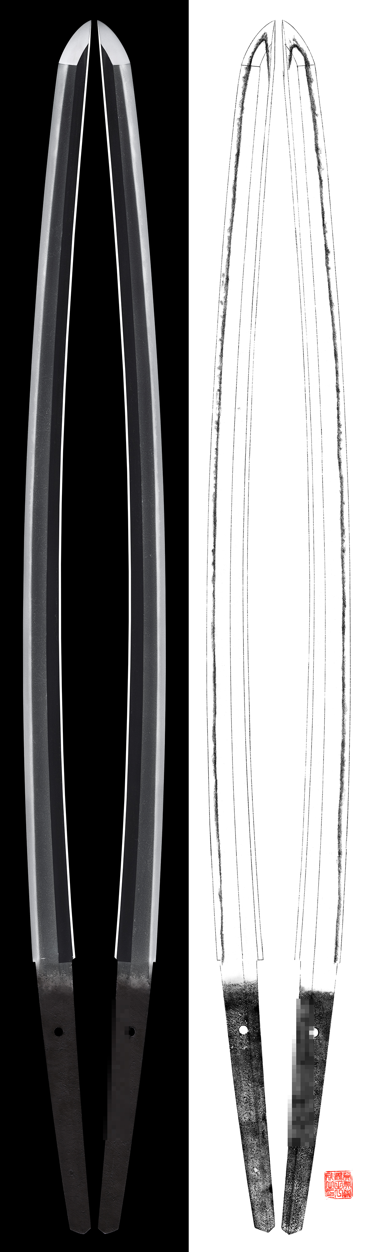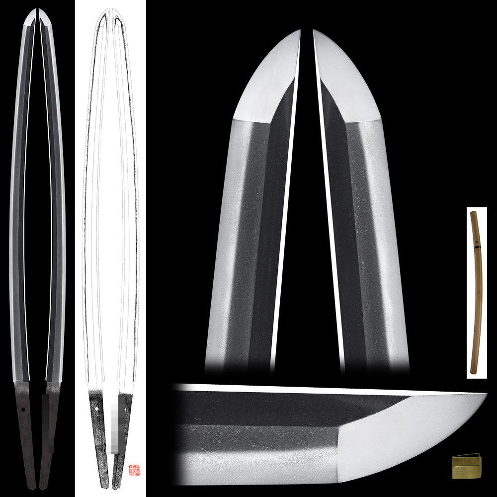 Shape : The blade is wide and thick with nice sori and also longer kissaki nice looking shape.