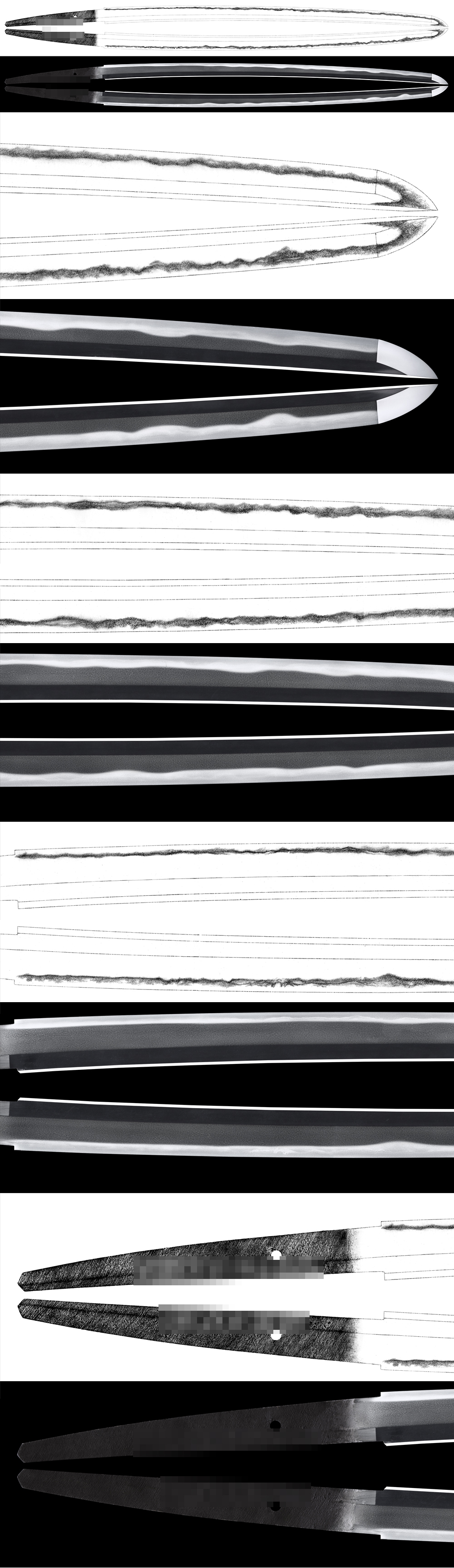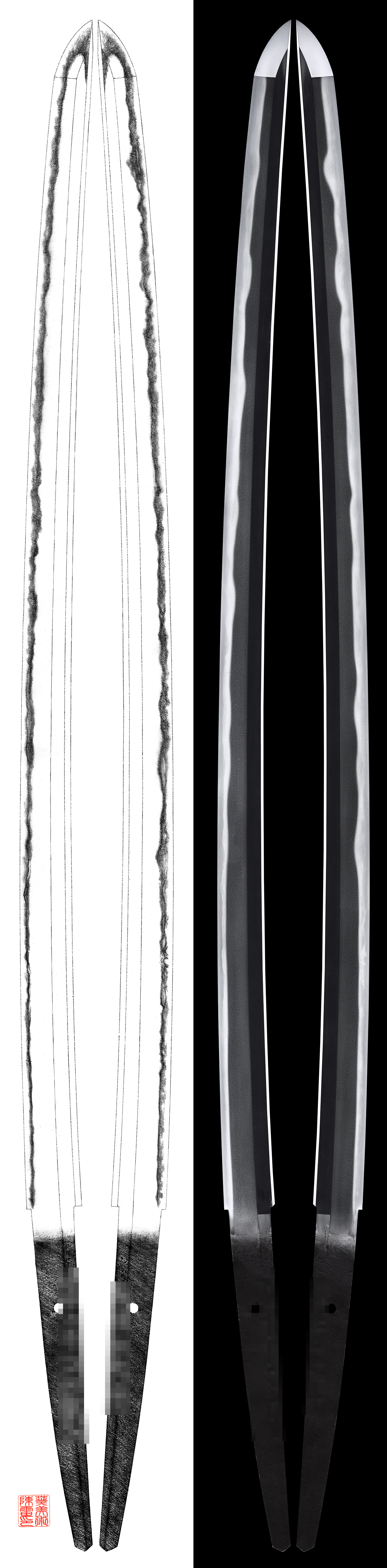 Shape : Wide and thick, shallow Sori, gorgeous blade.Shinogi Tsukuri. Iorimune.