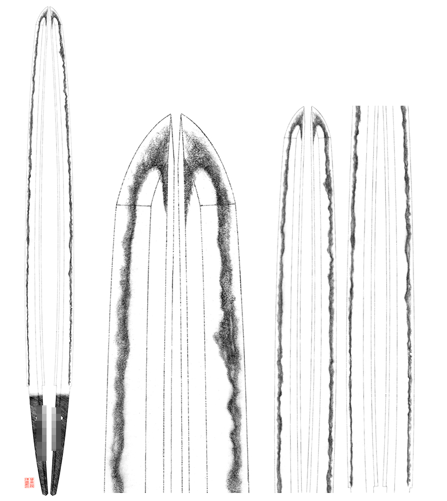 I think It is the most gorgeous hamon. The kissaki hamon is Mitsuhira and Korekazu.