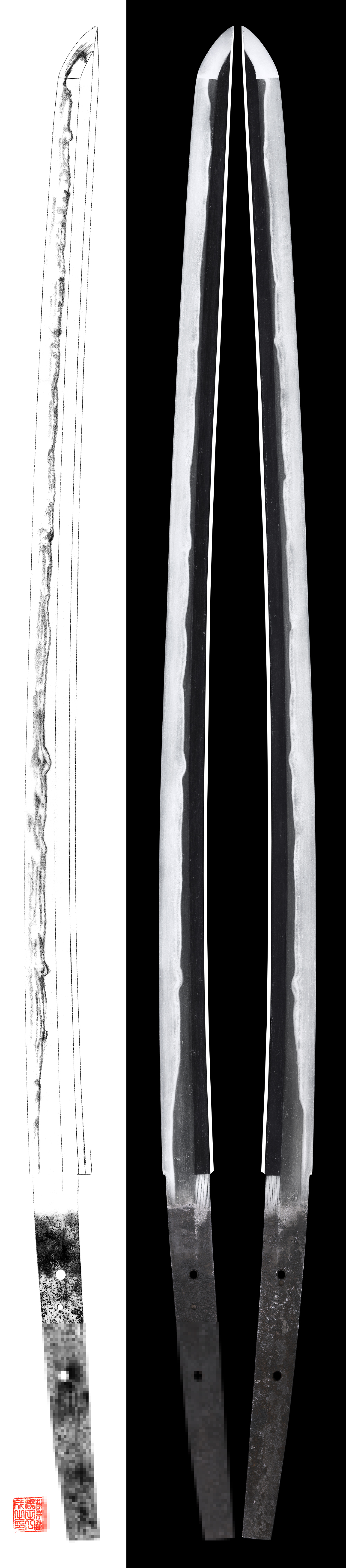 Hamon : Sudareba reach to the shinogi line.