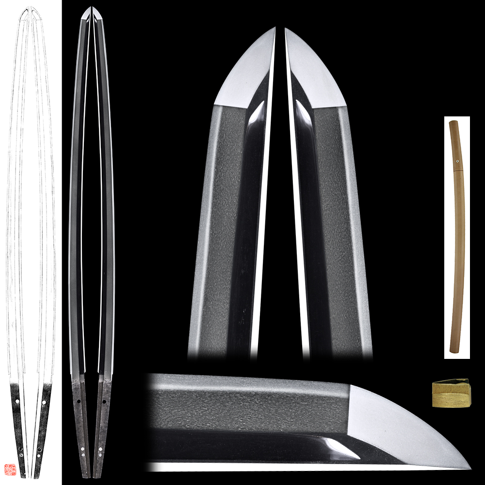 Hamon : Hoso-Suguha, Shimari-Nioikuchi with Ko-Nie and Muneyaki.
