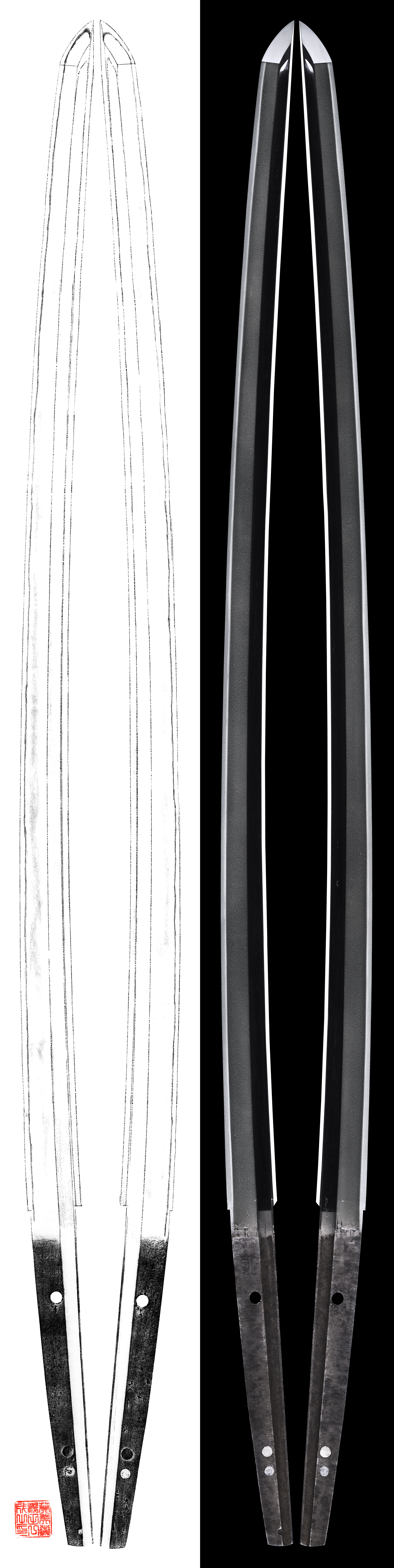 Also we can find the texture of the Jigane well because the Shinogiji was not engraved Bo-hi.