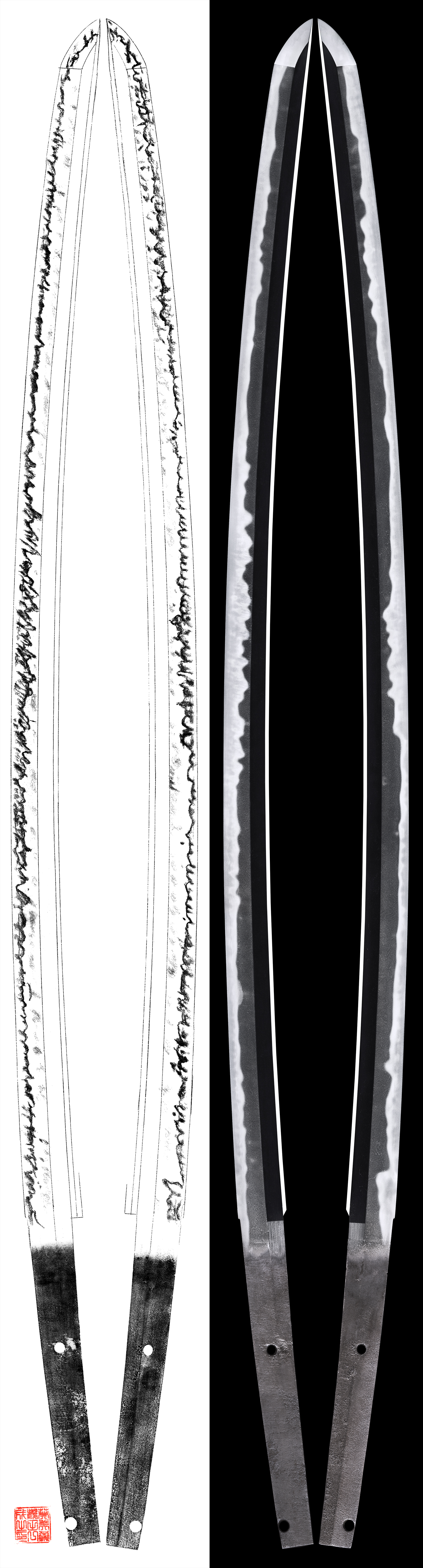 This sword is Oosuriage mumei but the blade is wide and thick with ookissaki style sword.