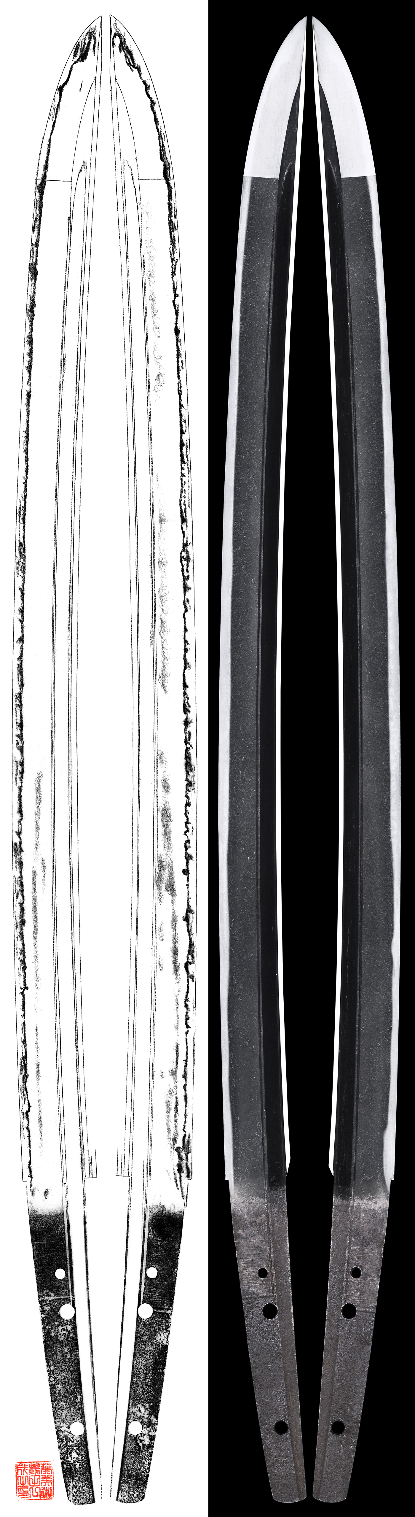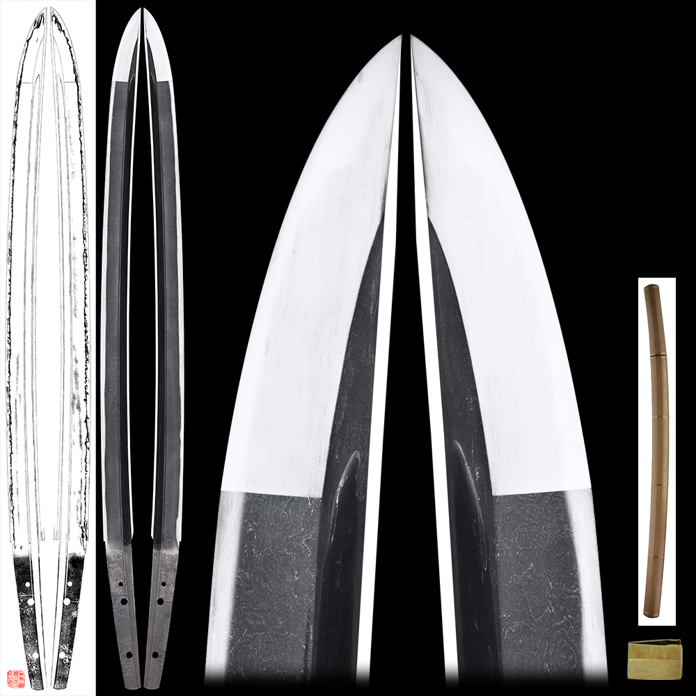 Shape : Wide 3.55cm and thick Mitsumune blade with Okissaki.