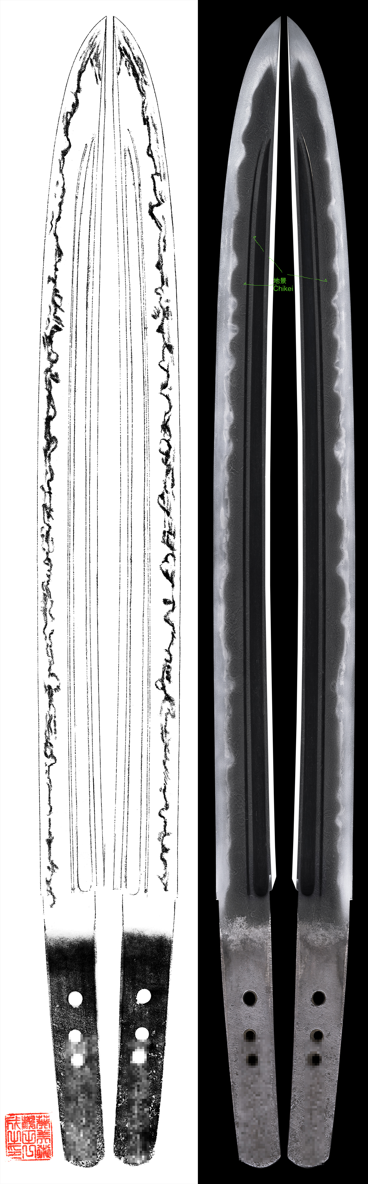 Jitetsu : Itame Hada and Mokume Hada well grained with Jinie attach. There are Chikei and Utsuri.