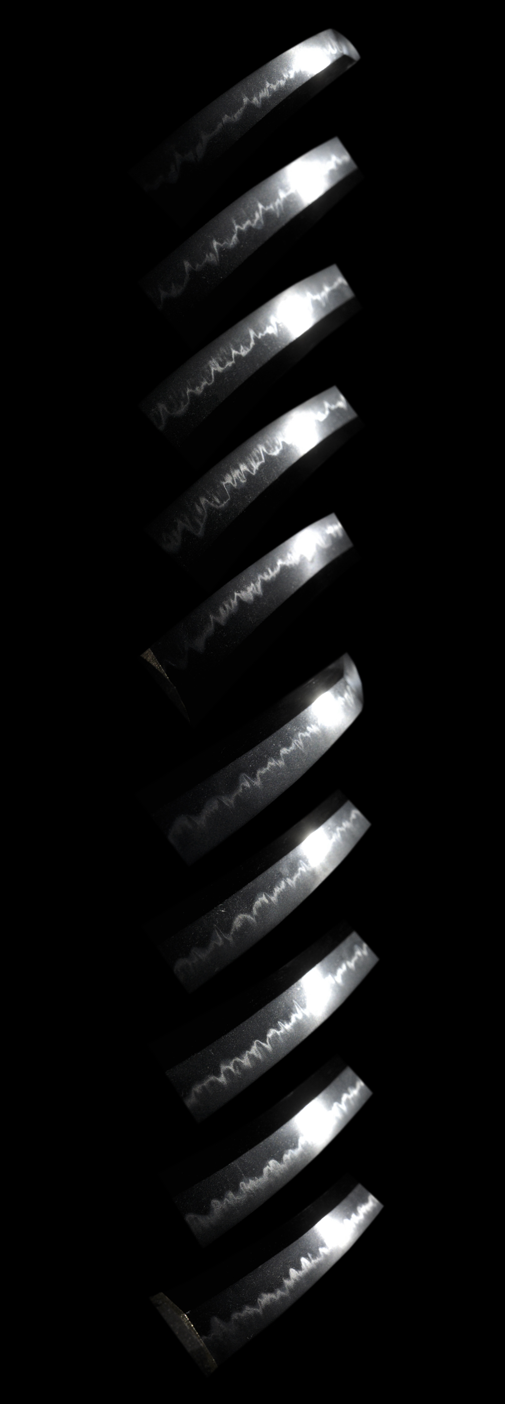 This piece has fantastic well grained Jigane with fine jinie attached. The Chikei work is undulating in the ha and Utsuri work is appearing as well.