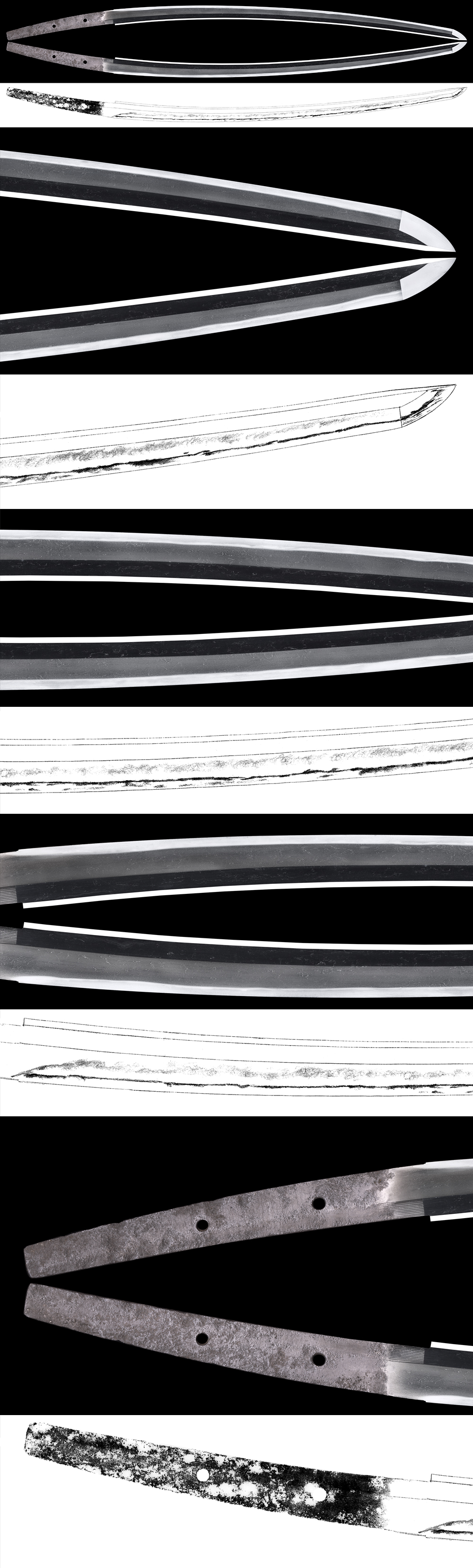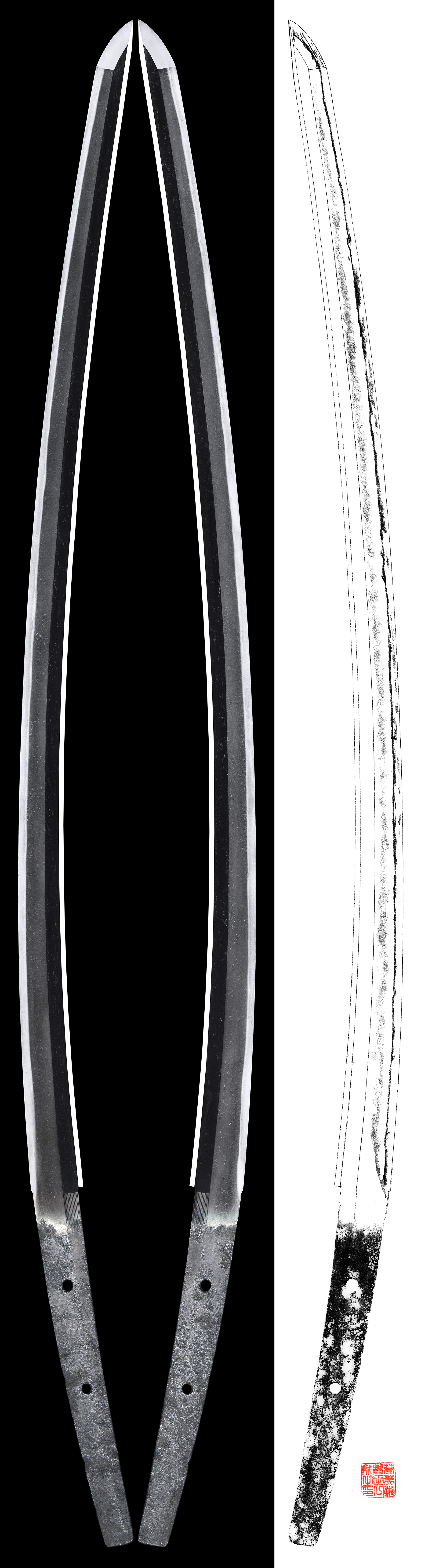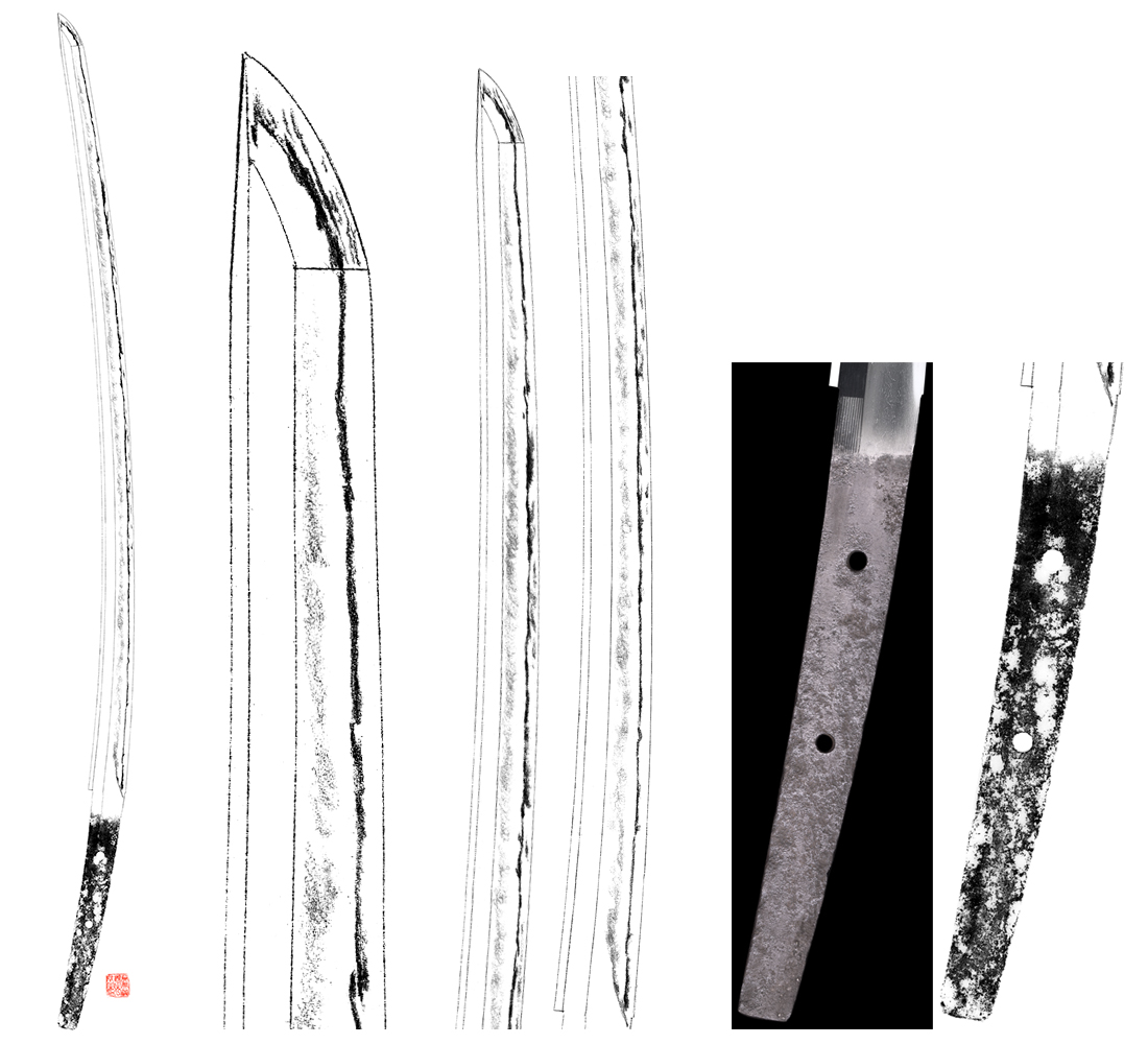 Shape : Ubu Nakago(original tang). It is regular width and thickness but there is deep sori. It is elegant Tachi shape.