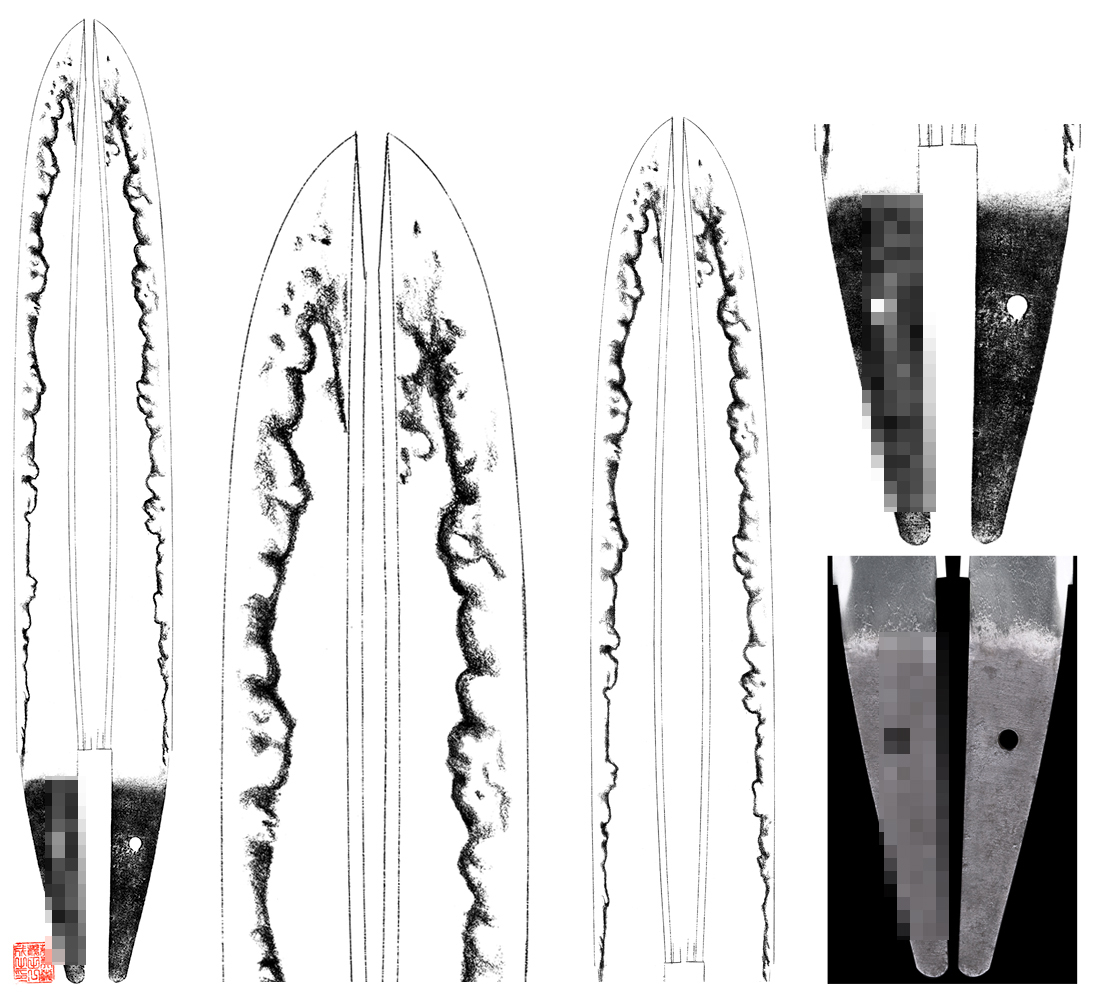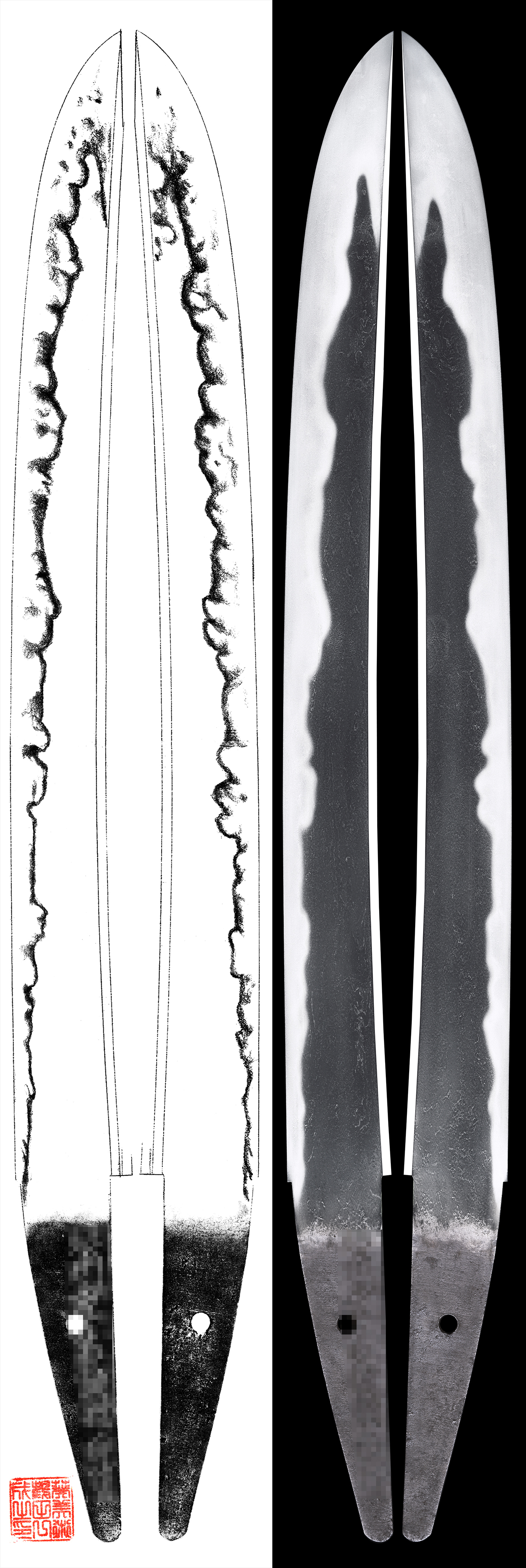 Hamon : Niedeki gunome midare, in Hamon there are sunaagashi and small kinsuji work.