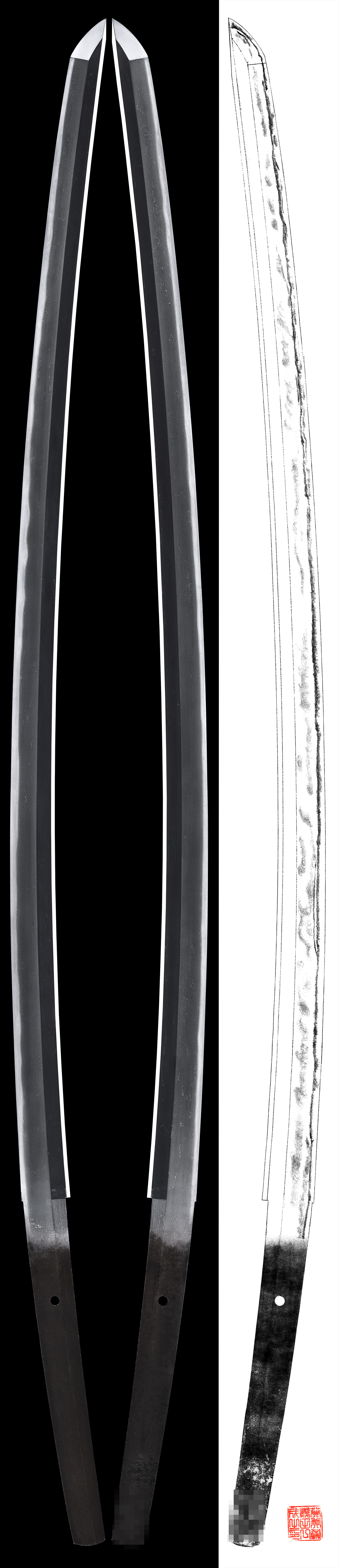 has learned from first generation Kanemoto. He eventually get highly named for his disctinctive Sanbonsugi and Togariba hamon.