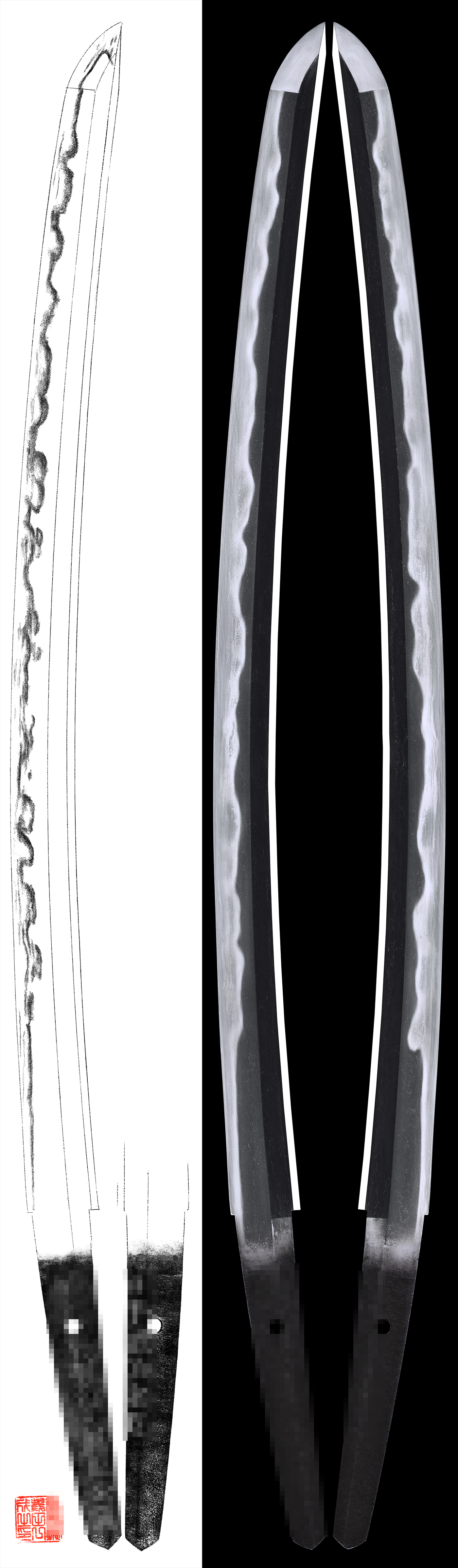 Hamon: From Hamachi Suguha, and then Gunome Midare with deep Nioikuchi.