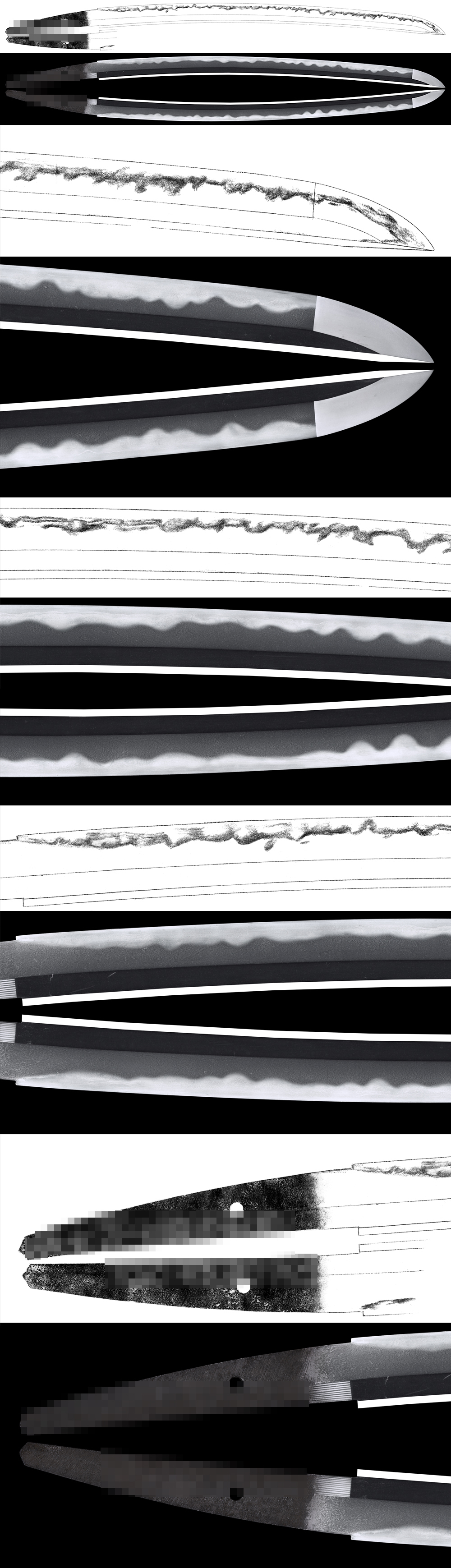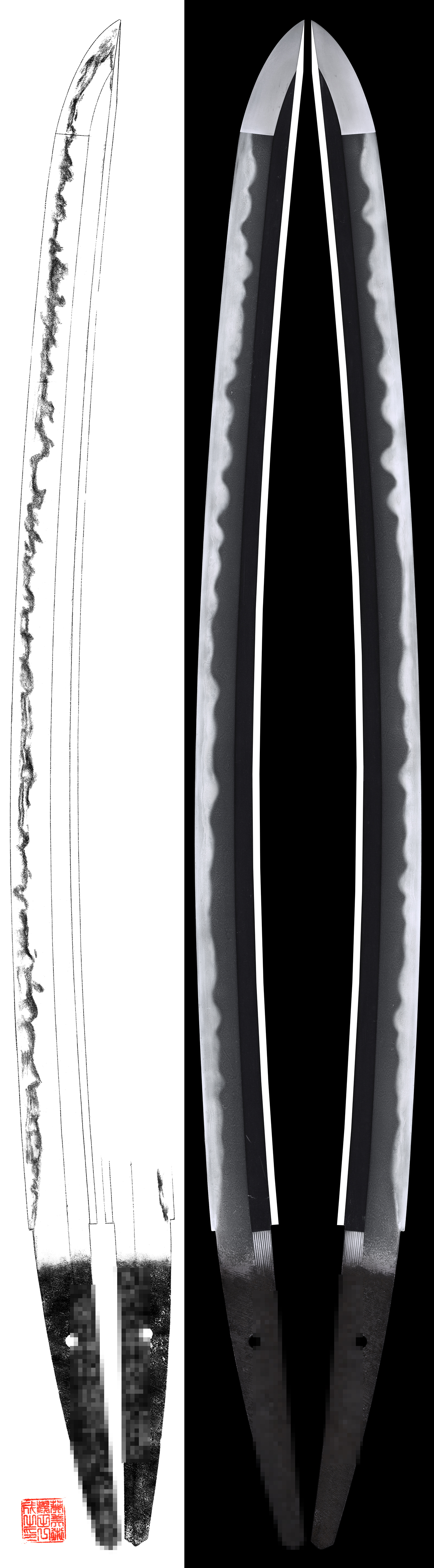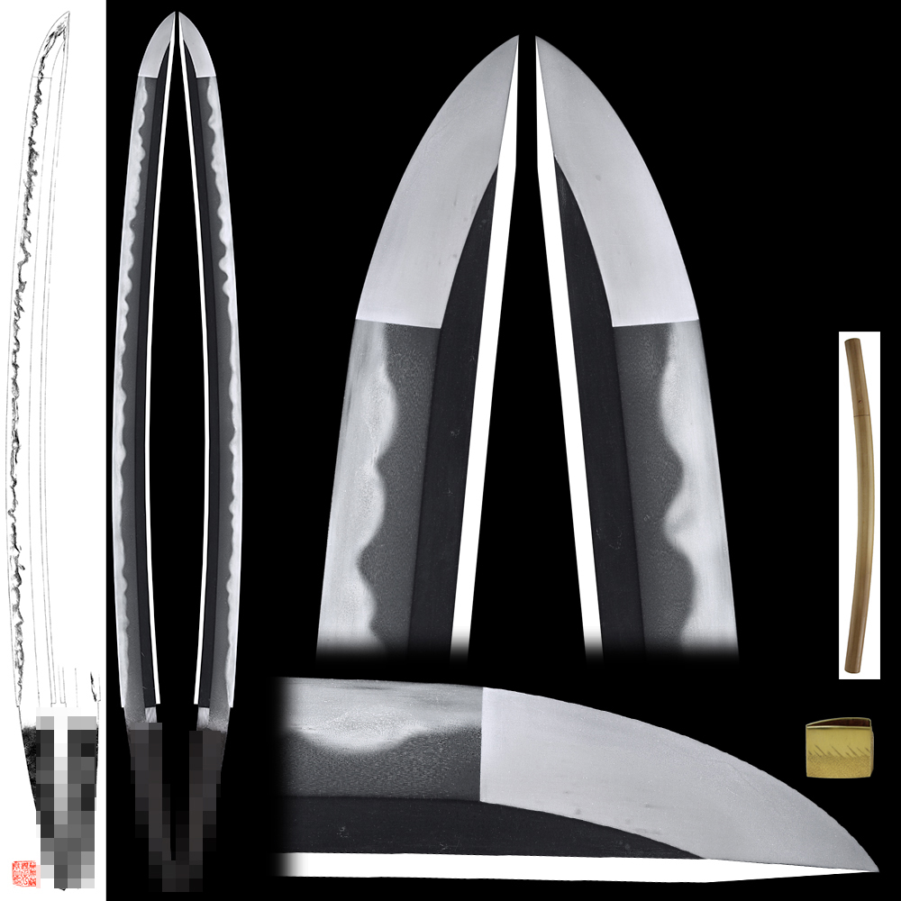 Shape: It is wide and thick strong katana with big and stretched kissaki.