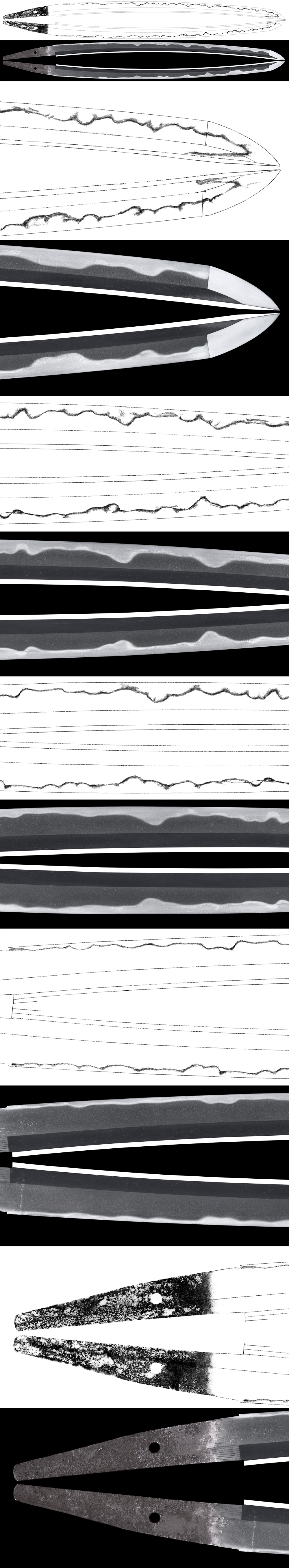 Hamon: Ko-Nie Deki, from the Hamachi is Suguha and then Gunome Midare.