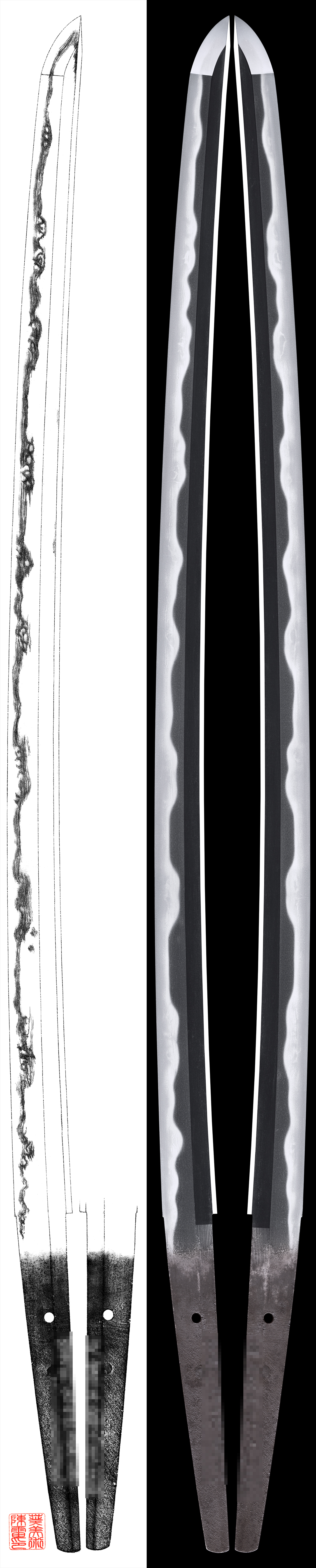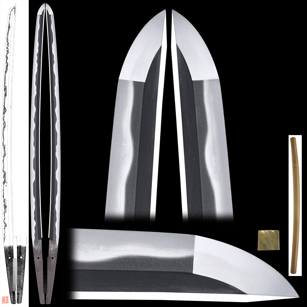 Shape : It is wide and thick sword with shallow sori. Kissaki is long end. NIce shape katana.