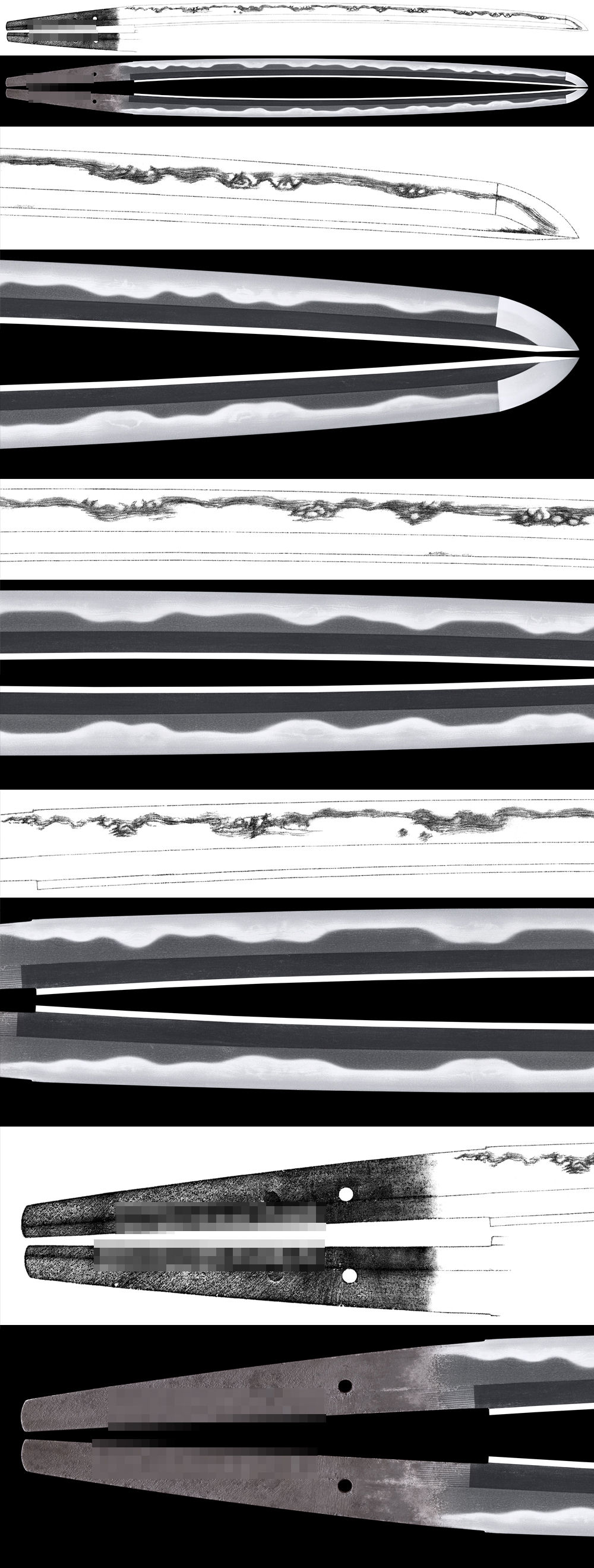 Jitetsu : Koitame hada well grained with masame hada appearing. There is jinie well attached and chikei activity. It is elegant jigane.