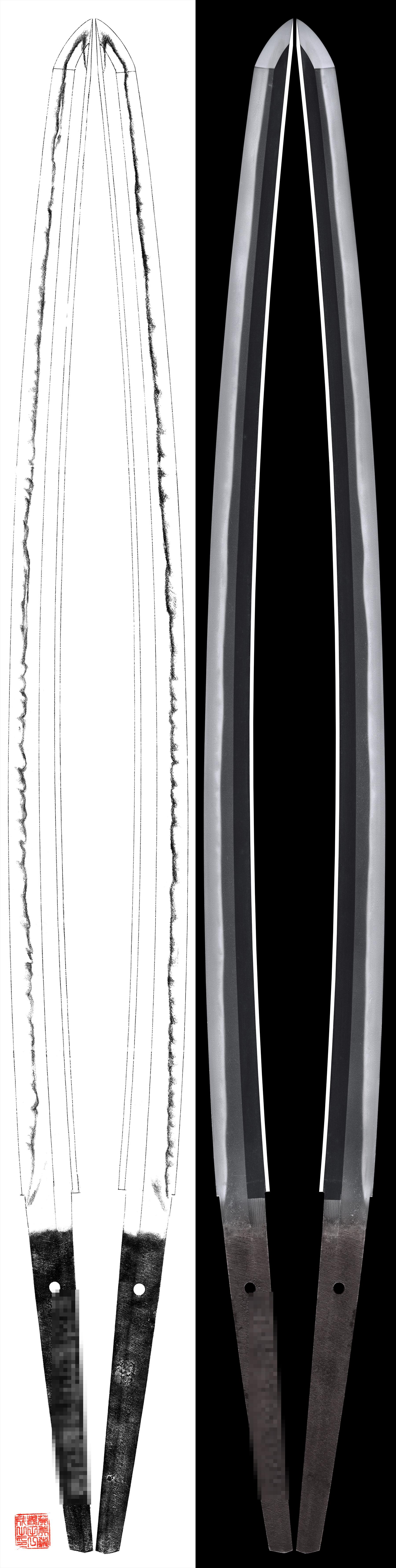 Shape : Wide and thick blade with nice Sori. Boshi is rather long.