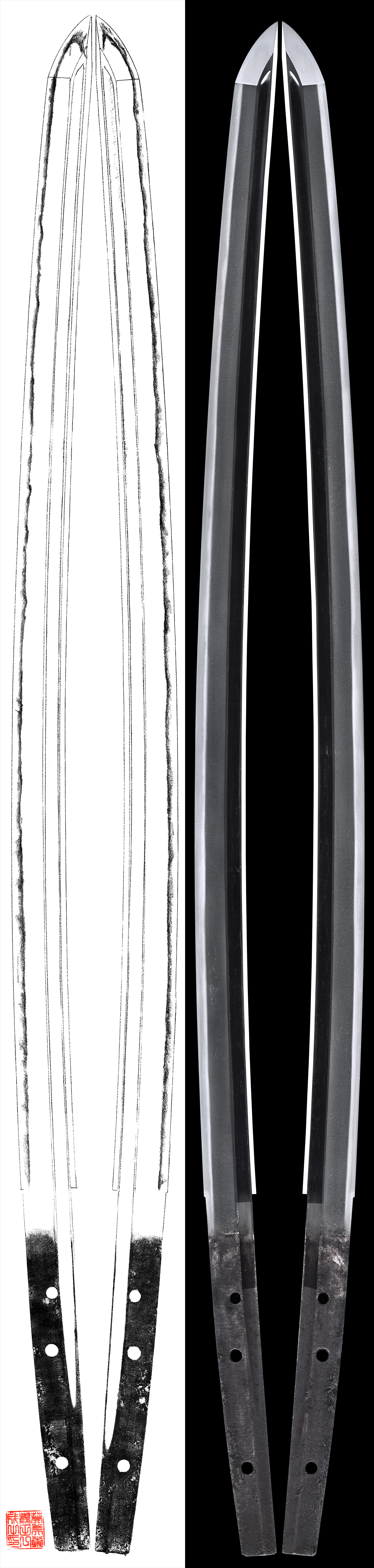 Shape : Osuriage Mumei Katana. There are Bo-Hi on both side.