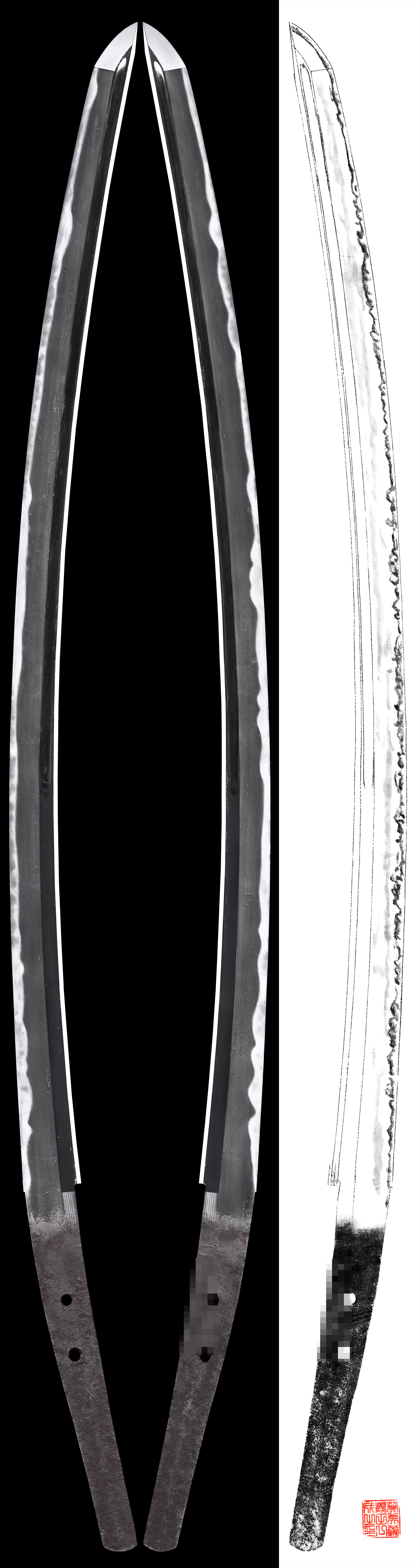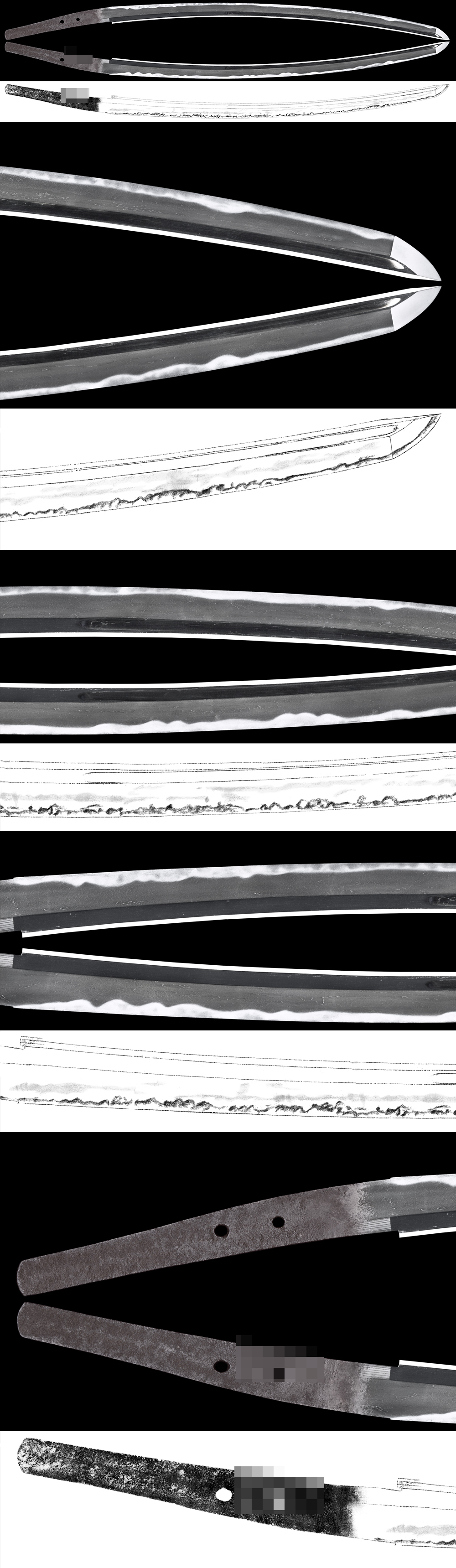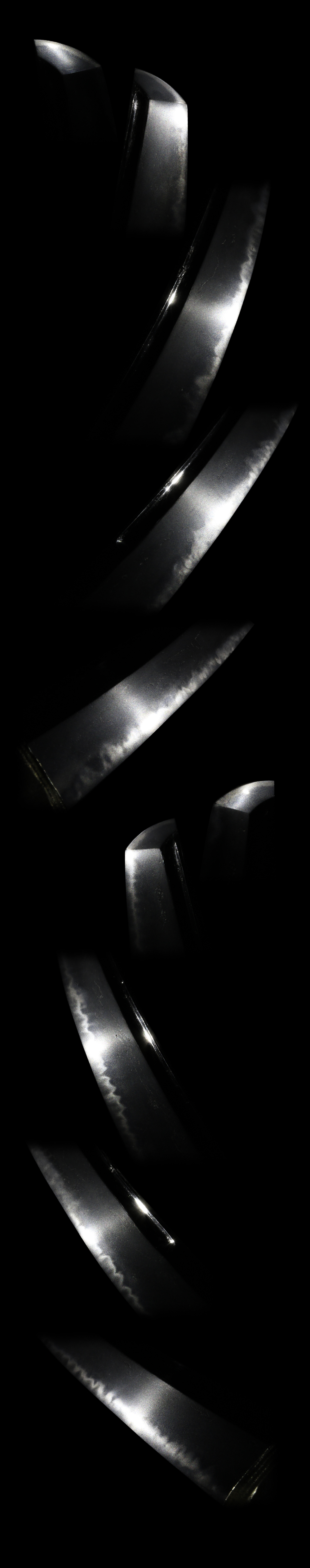 Hamon : Nioi Deki, Ko-Gunome Midare with Ko-Choji Midare. The Nioikuchi is thick. Boshi is round shape. Habuchi is soft.