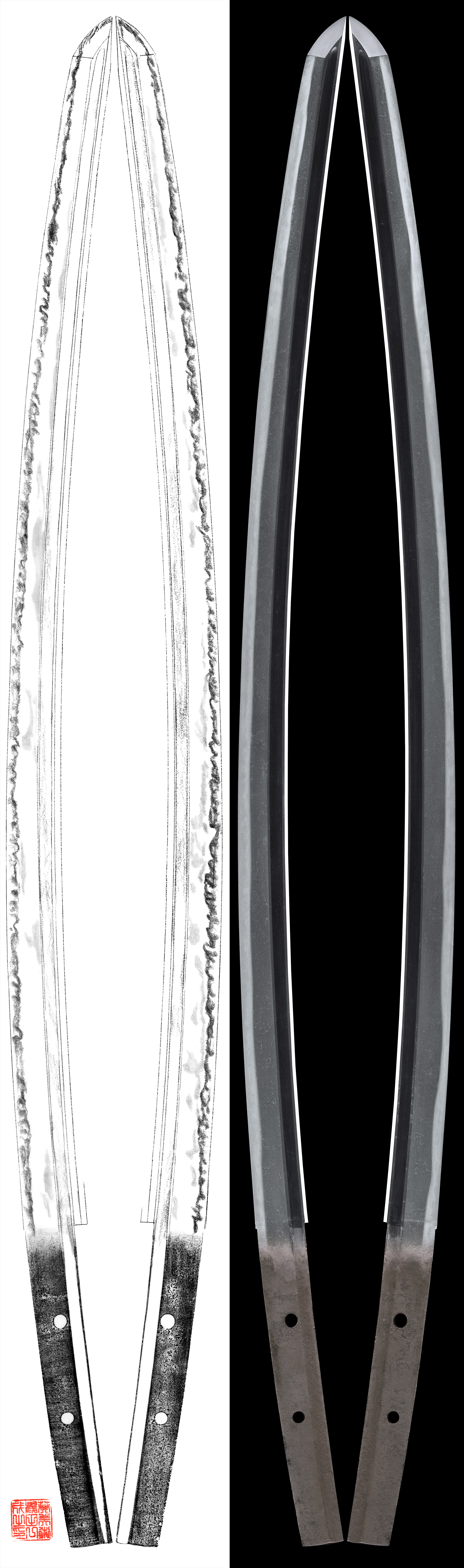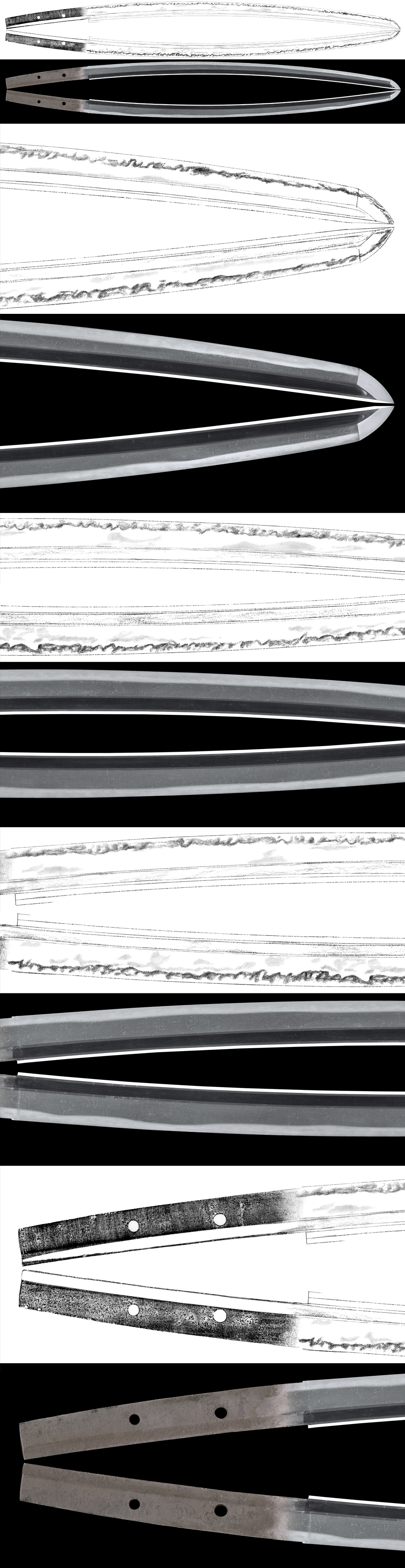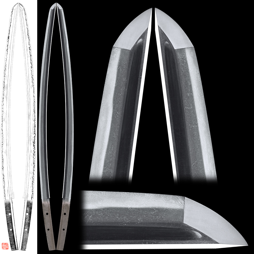 Shape : Osuriage Mumei, elegant shape Katana. There are Bo-Hi on both side.