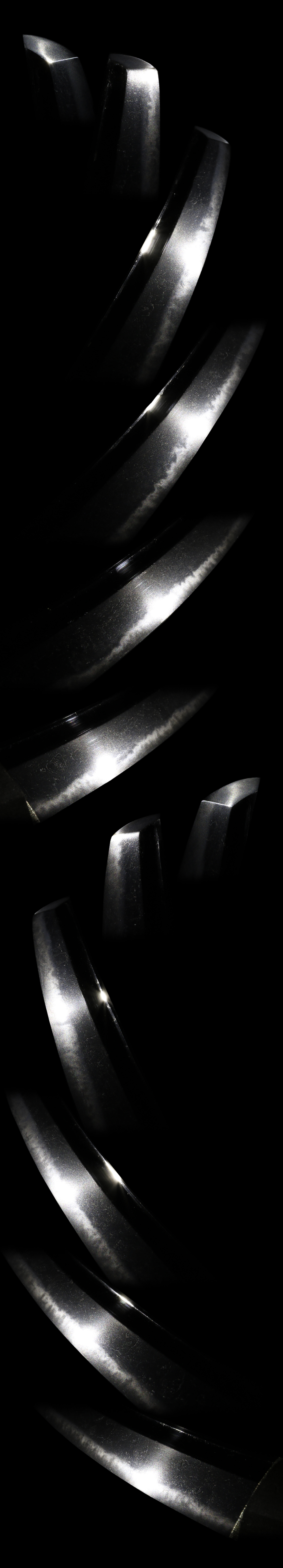 Hamon : Ko-Gunome Midare with Nie. There are Ko-Ashi and Kinsuji.
