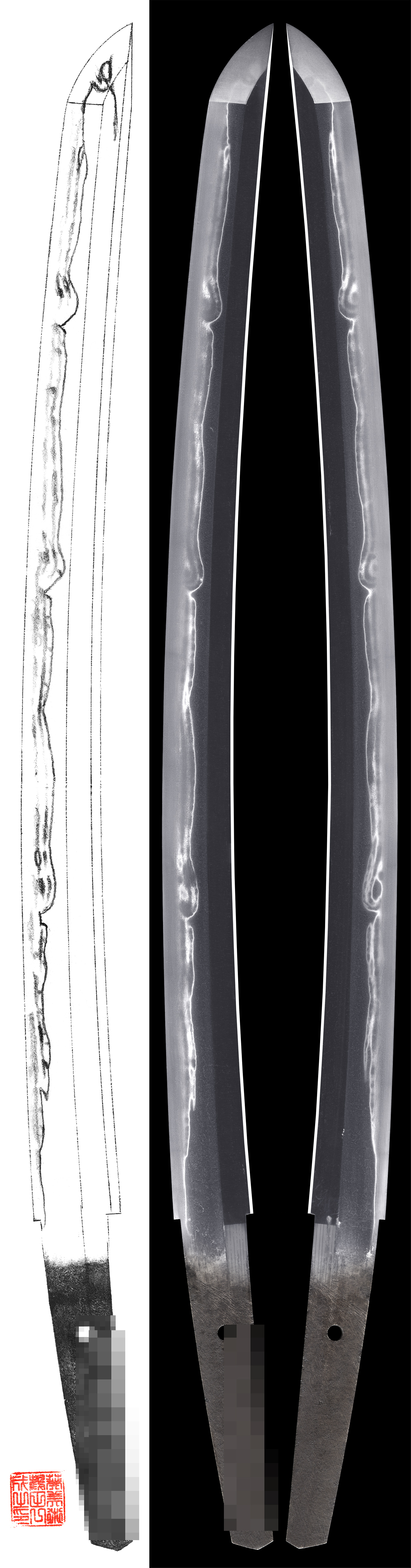 Hamon : Niedeki sudareba hamon bright and elegant texture.