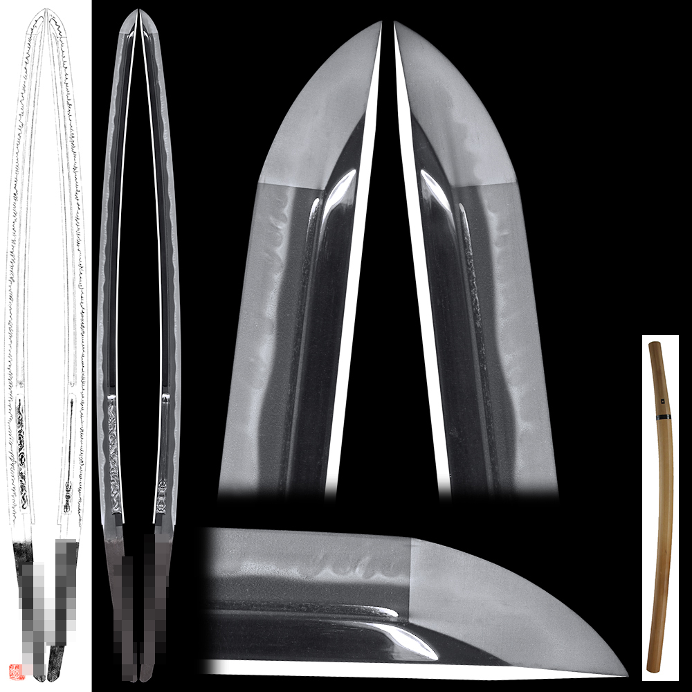 This sword is suriage mumei shape with long and wide and thick Okissaki sword.