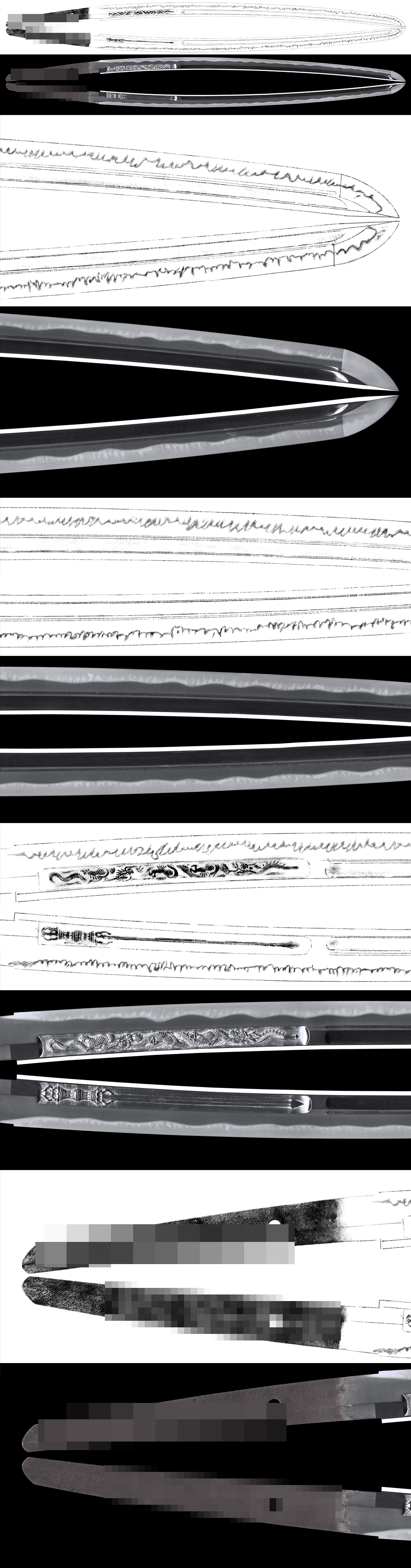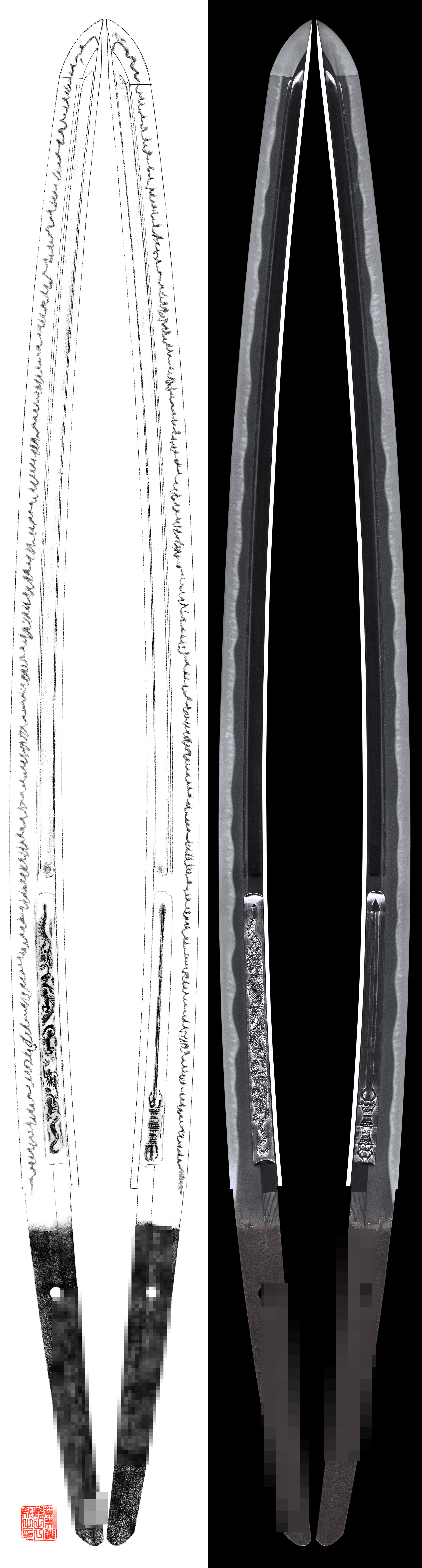 On the blade, engraved, Bo-Hi, Soe-Hi, dragon and Dokko.